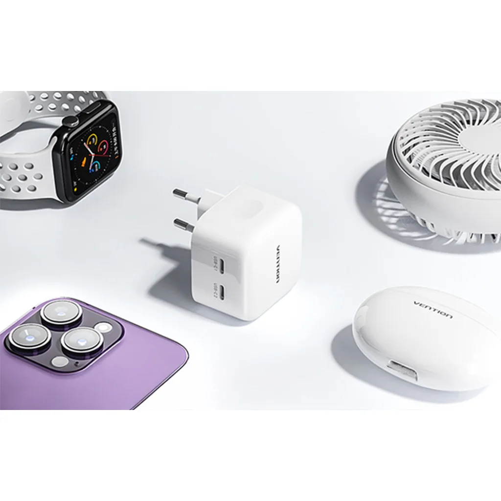 A GaN technológia alkalmazása a Vention FBPW0-EU töltőben lehetővé teszi az eszköz méretének és súlyának csökkentését teljesítményvesztés nélkül. A GaN egy korszerű harmadik generációs félvezető anyag, amely jelentősen jobb gyors töltési lehetőségeket kínál a hagyományos szilícium alapú töltőkhöz képest. Ez nem csak hatékonyabbá, hanem felhasználóbaráttá is teszi a töltőt, gyors töltést kínálva kompakt formában.