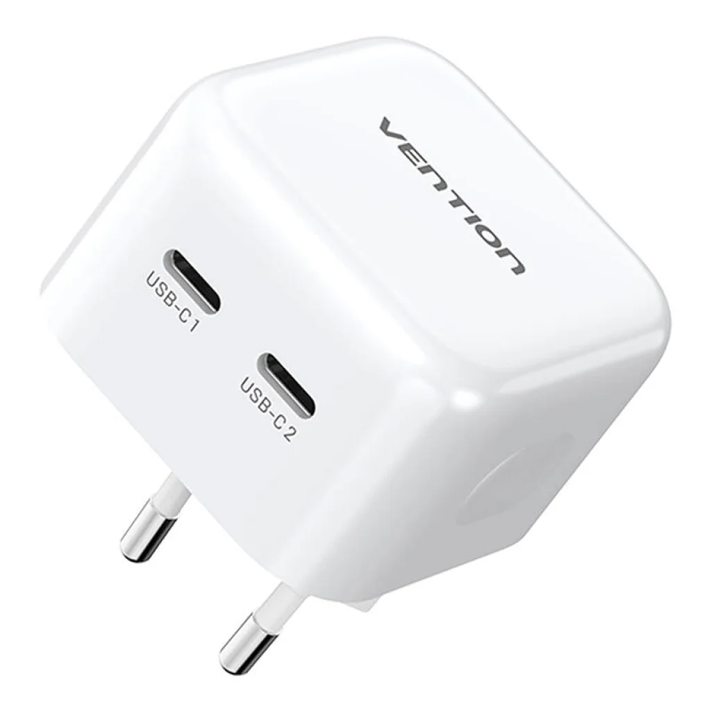 A Vention FBPW0-EU töltő két 35W-os USB-C porttal van felszerelve, amely lehetővé teszi, hogy két eszközt töltsön egyszerre teljesítménycsökkenés nélkül. Ez ideális azok számára, akik gyorsan szeretnék tölteni a okostelefonjukat, tabletjüket és laptopjukat egyszerre. A GaN (gallium-nitrid) technológiának köszönhetően a töltő nemcsak kisebb és könnyebb, hanem hatékonyabb is, jobb és gyorsabb töltést biztosítva még alacsony hőmérsékleten is.