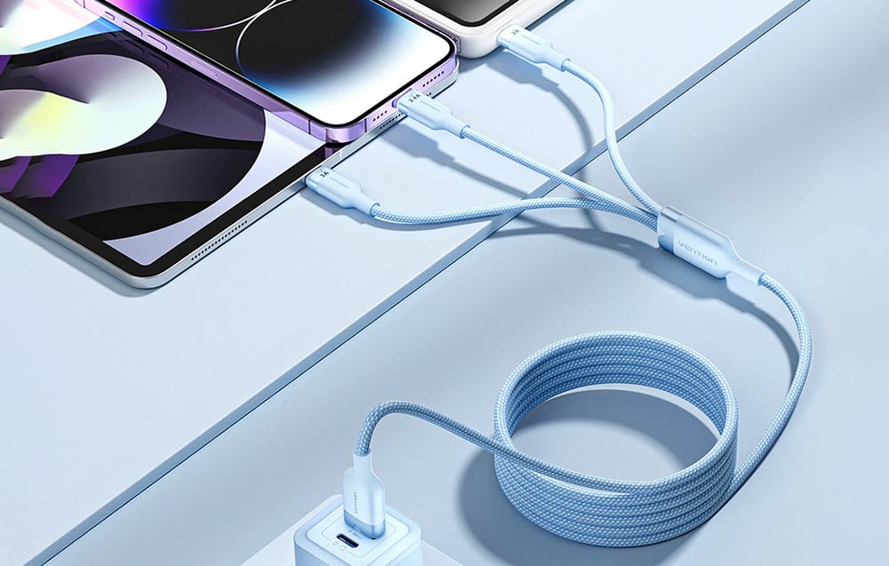 Az USB 2.0 A - 3 az 1-ben 3A Vention CTPLG 1,5M kábel egy sokoldalú megoldás, amely lehetővé teszi, hogy különböző eszközöket töltsön és szinkronizáljon egyetlen kábellel. Három különböző csatlakozóval - Lightning, USB-C és Micro-B - felszerelve tökéletes lesz a modern okostelefonok, valamint a régebbi eszközök, például powerbankok és fényképezőgépek töltésére.