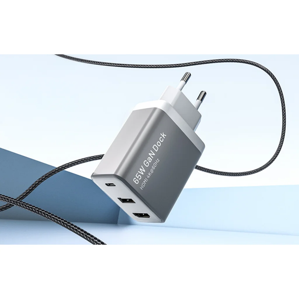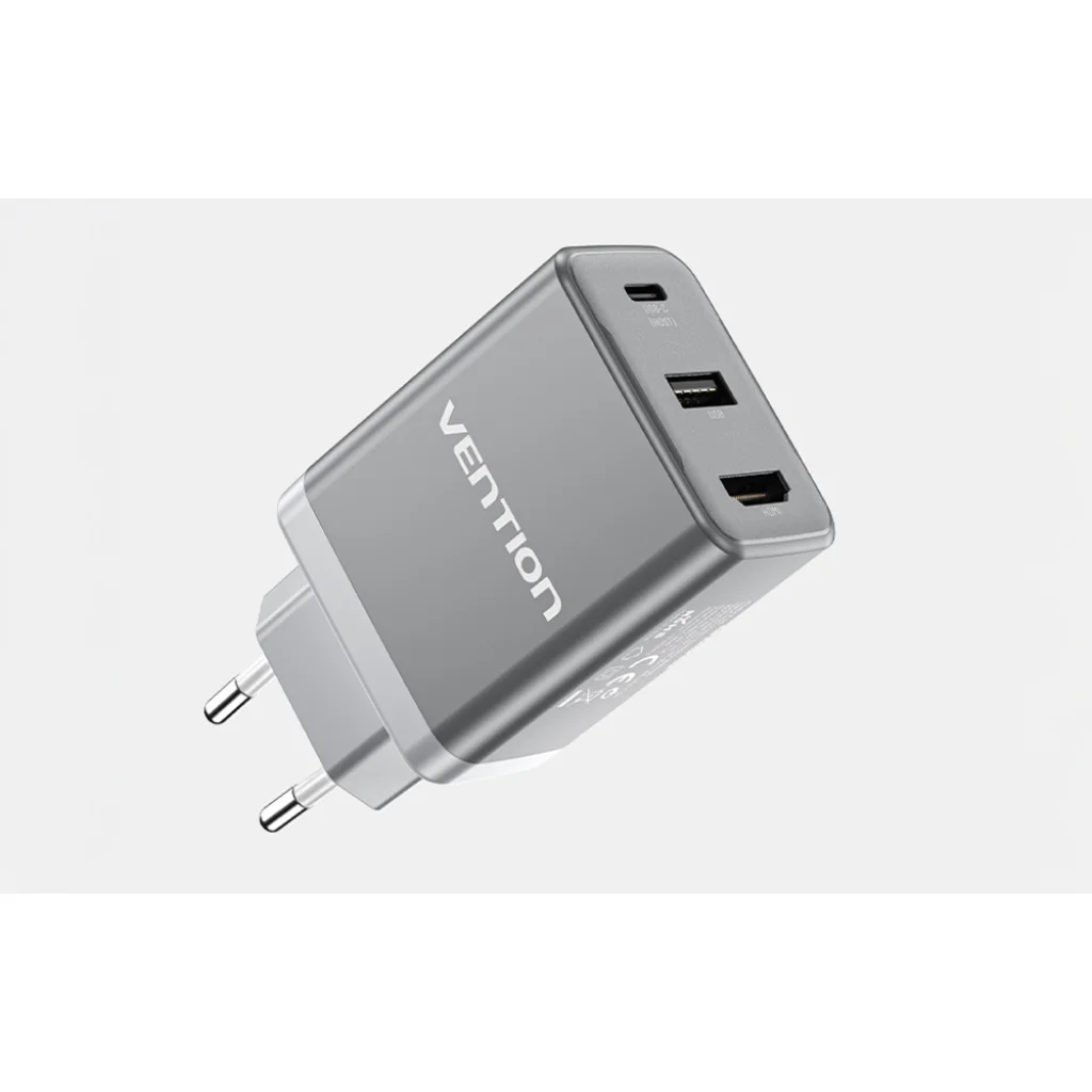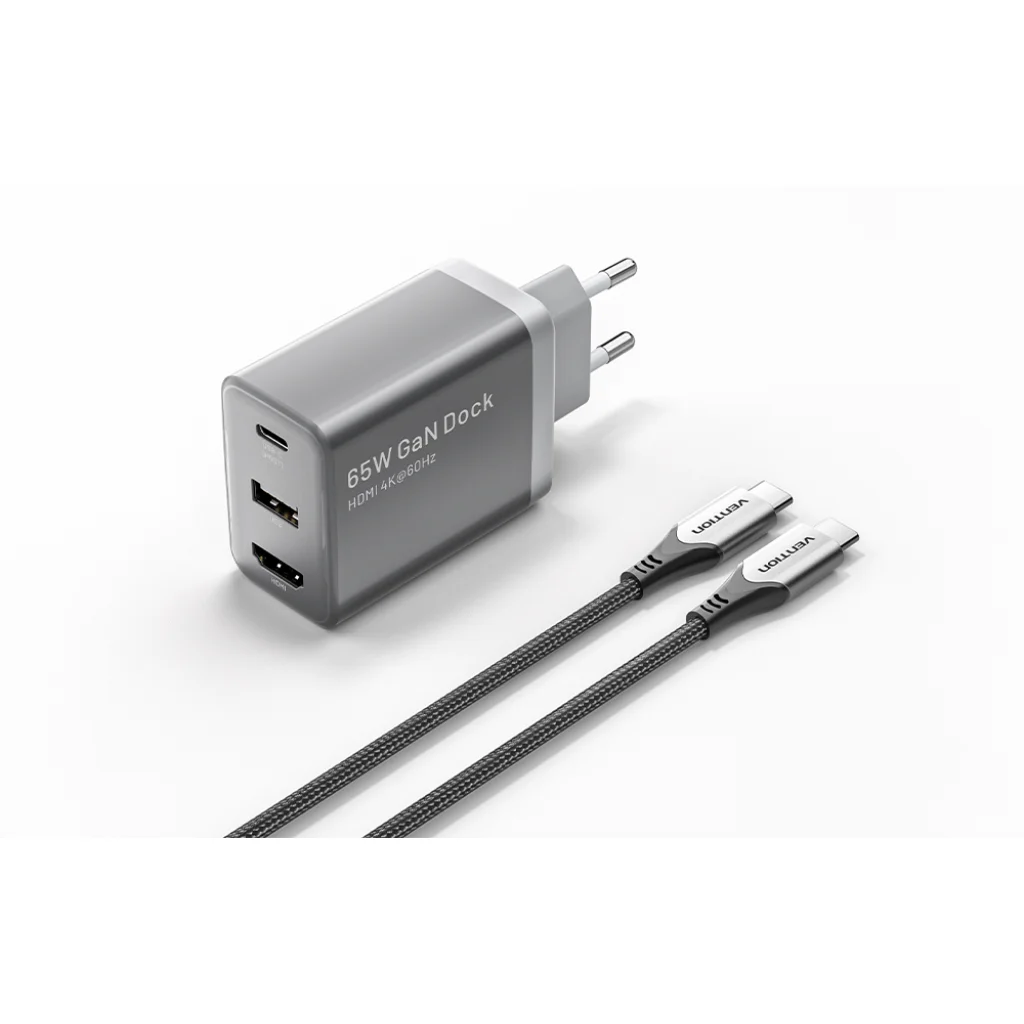A Vention FJAH0-EU USB(C+A)+HDMI GaN hálózati töltő (60W/5W/4K@60Hz) (szürke) a modern technológia, sokoldalúság és biztonság tökéletes kombinációja. Kompakt kialakítása, fejlett töltési funkciói és széles körű kompatibilitása nélkülözhetetlen eszközzé teszik otthon és útközben egyaránt. A GaN technológiával, gyors adatátvitellel és három eszköz egyidejű töltésének képességével a Vention FEDB0-EU töltő fokozza a mindennapi munka és szórakozás kényelmét és hatékonyságát. Válaszd a Vention FJAH0-EU-t, és élvezd a megbízható, gyors és biztonságos áramellátást az eszközeid számára bárhol, bármikor!