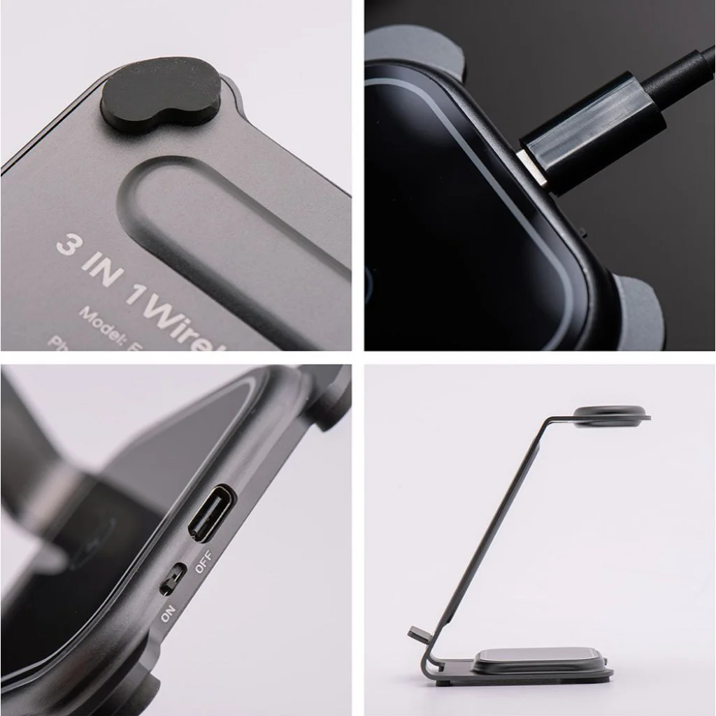 3in1 Apple Watch és Samsung Watch kompatibilis szürke töltőállomás Forcell F-ENERGY Simply Charge