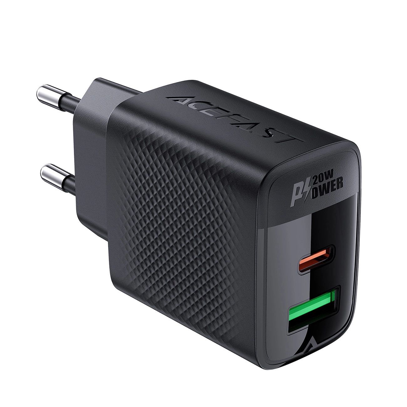 GaN Acefast A78 fali töltő USB-A és USB-C portokkal, akár 20W teljesítménnyel és Power Delivery támogatással - fekete. Az Acefast A78 fali töltő nagyszerű megoldás azok számára, akik megbízhatóságot és hatékonyságot keresnek. A GaN technológia alkalmazásának köszönhetően magasabb hatékonyságot, kisebb méretet és alacsonyabb üzemi hőmérsékletet kínál. A töltő USB-A és USB-C portokkal van felszerelve, és lehetővé teszi a különféle eszközök biztonságos töltését, a okostelefonoktól táblagépeken át a okosórákig. Az intelligens chip számos védelemmel, például túlfeszültség vagy túlterhelés elleni védelemmel teljes biztonságot nyújt a használat során.