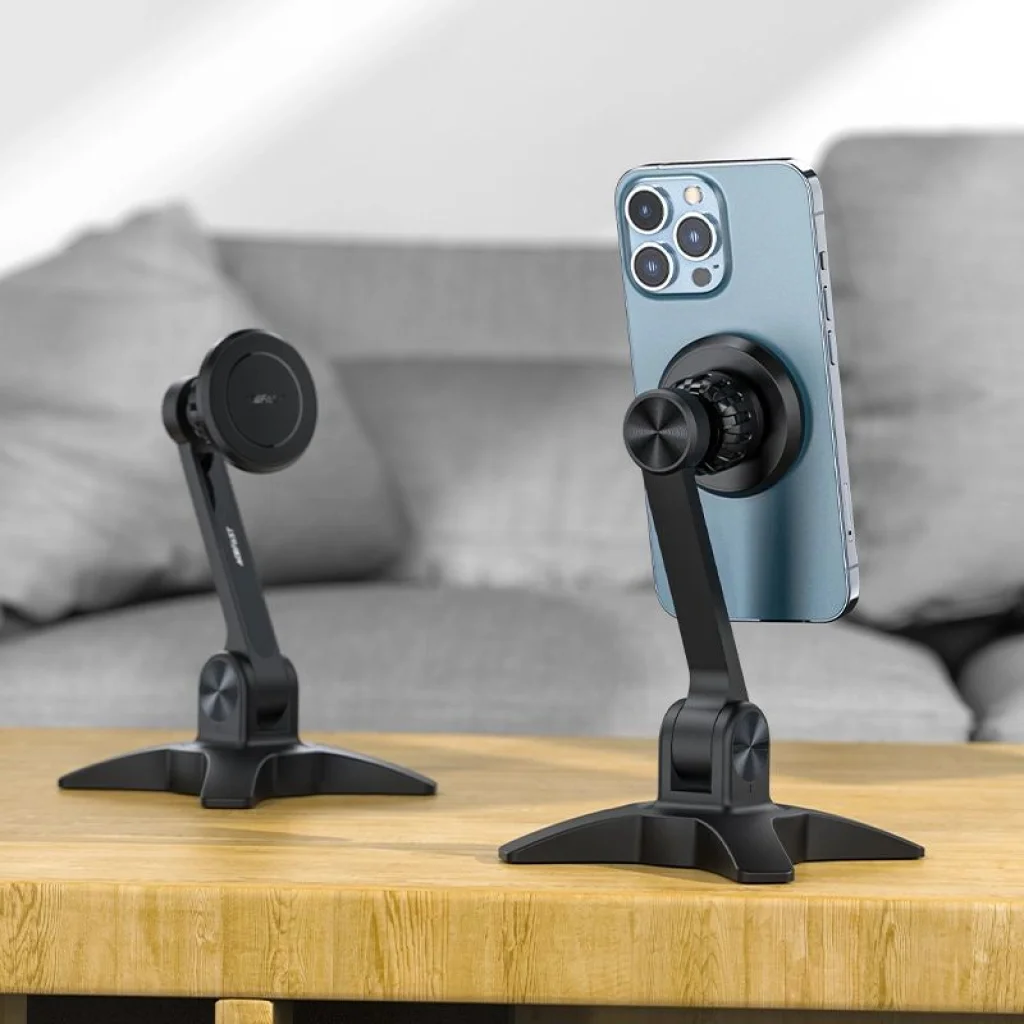 Acefast stand stand mágneses telefontartó fekete (E11) Állítható mágneses tartó, amely nagyobb vagy kisebb eszközöket is képes tartani. A tartó 6 N52 mágnesből áll, így biztos lehet benne, hogy a telefon nem fog lecsúszni a tartóról. Az eszközt könnyedén magával viheti utazásra, mivel kényelmes méretre összecsukható. A magas kompatibilitás és az gazdaságos kialakítás garantálja, hogy a tartó bármilyen eszközzel működni fog az asztalon. Filmnézés vagy a telefon használata az irodában sokkal egyszerűbbé válik. Az állvány nagyon stabil és védi a berendezést a sérülésektől. Az egész szerkezet egyszerű és könnyen állítható. Specifikáció:
