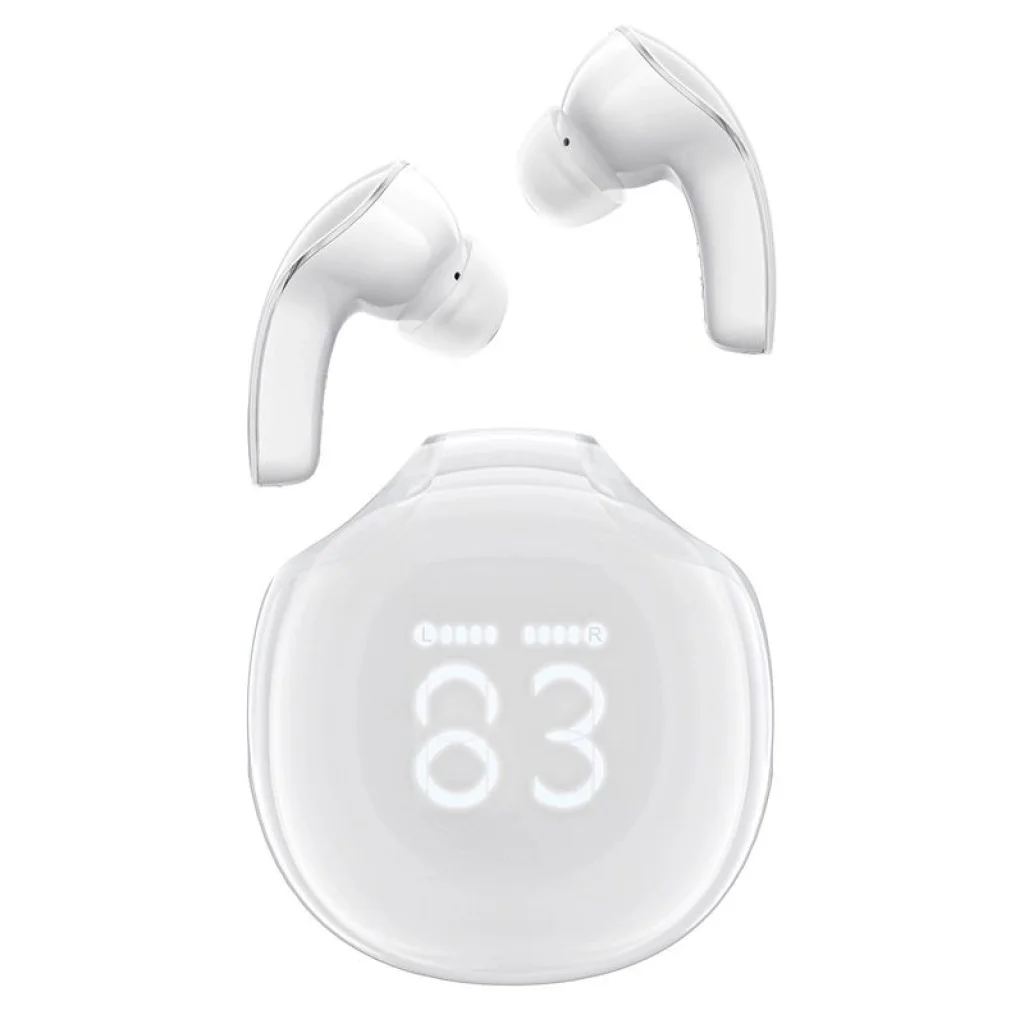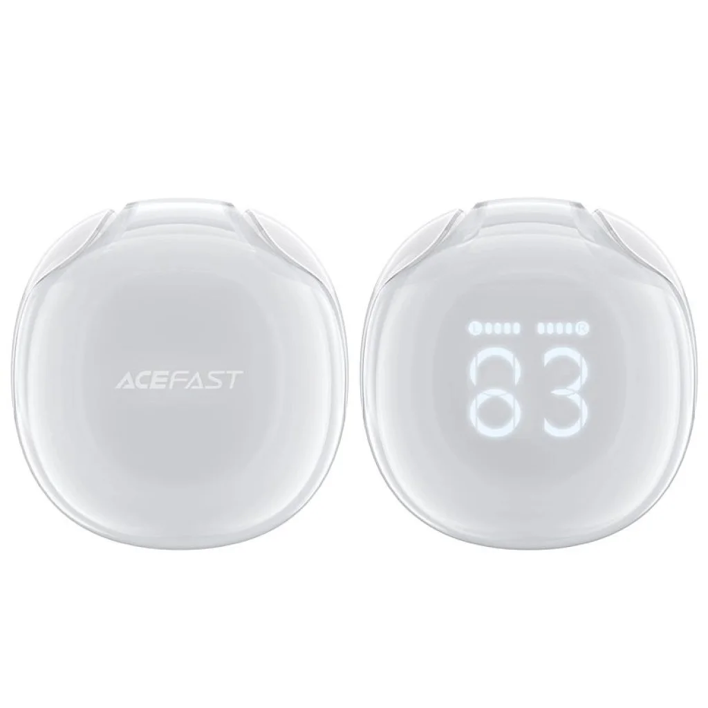 Acefast Bluetooth 5.3 vezeték nélküli fülhallgató kijelzővel, a fülbe helyezhető, IPX4 tanúsítvánnyal - fehér Acefast T9 vezeték nélküli fülhallgató kiemelkedő zenei és telefonhívási minőséget biztosít. Teljes töltéssel 6,5 órán át működnek. LED kijelzője tájékoztat a töltöttségi szintről. A Bluetooth 5.3 technológia gyors és stabil kapcsolatot biztosít az eszközhöz. Könnyűek és rendkívül kényelmesek. Az Acefast T9 fülhallgató legfontosabb előnyei: