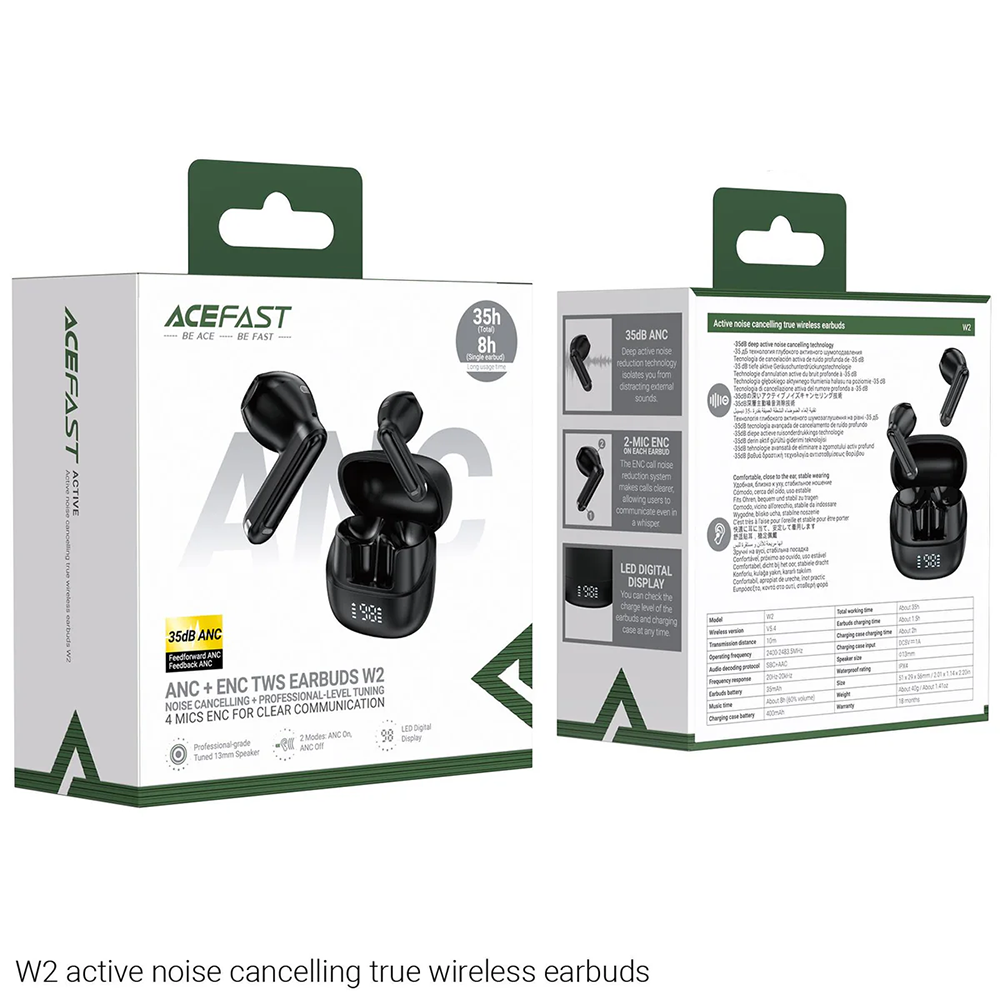 Lépjen be a tiszta hangzás és zavartalan kommunikáció világába az Acefast W2 TWS vezeték nélküli fülhallgatóval. Ez a prémium fekete fülhallgató a legmodernebb technológiákat ötvözi, hogy Ön a lehető legjobb audioélményt élvezhesse, bárhol is járjon.