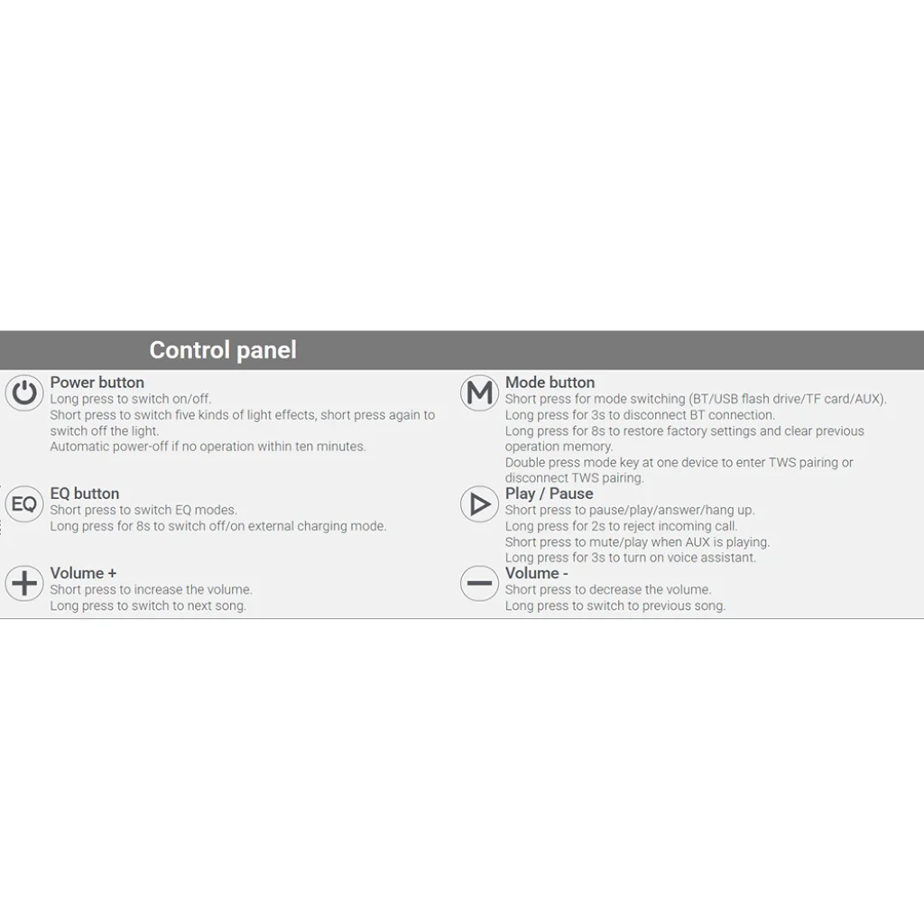 - A csomag tartalmazza: hordozható hangszóró, 3.5mm Jack 3.5mm audio kábel, USB-A - USB-C kábel.