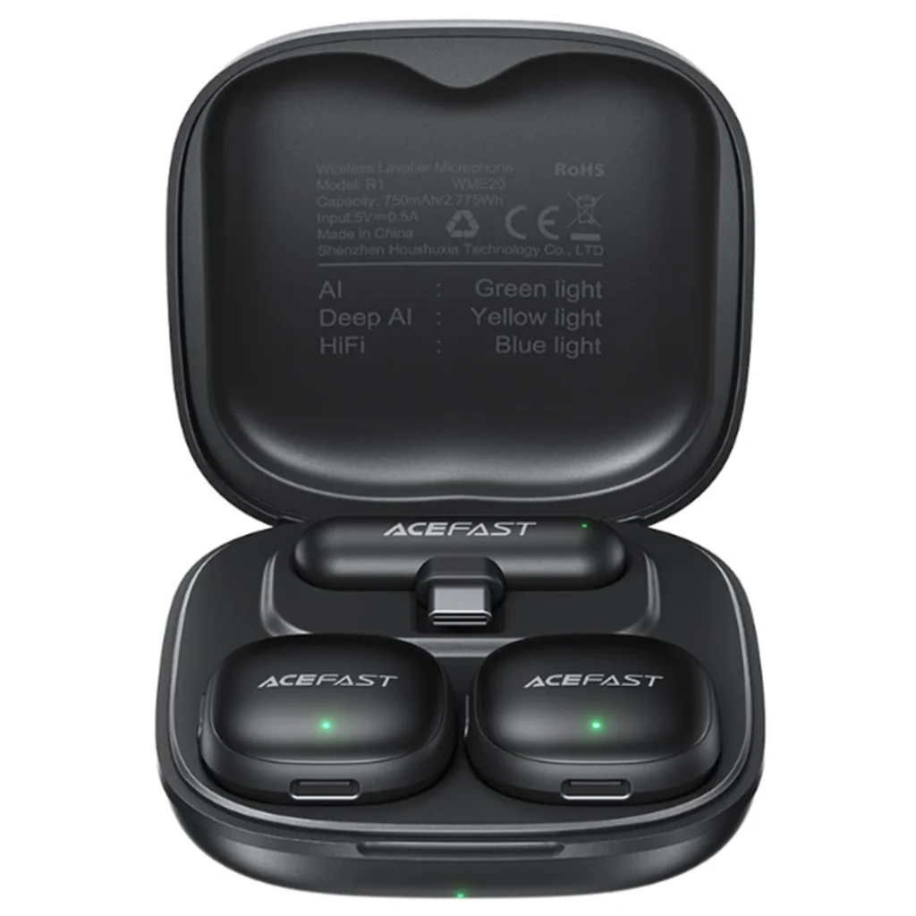 Termék leírás Acefast - Vezeték nélküli Lavalier Mikrofonok (R1) - Lightning, HD 360°Sound, AI zajcsökkentés, 750mAh, ultra-alacsony késleltetés - Fekete