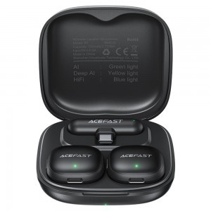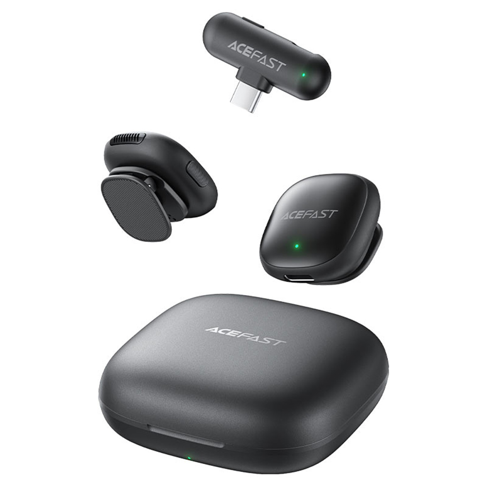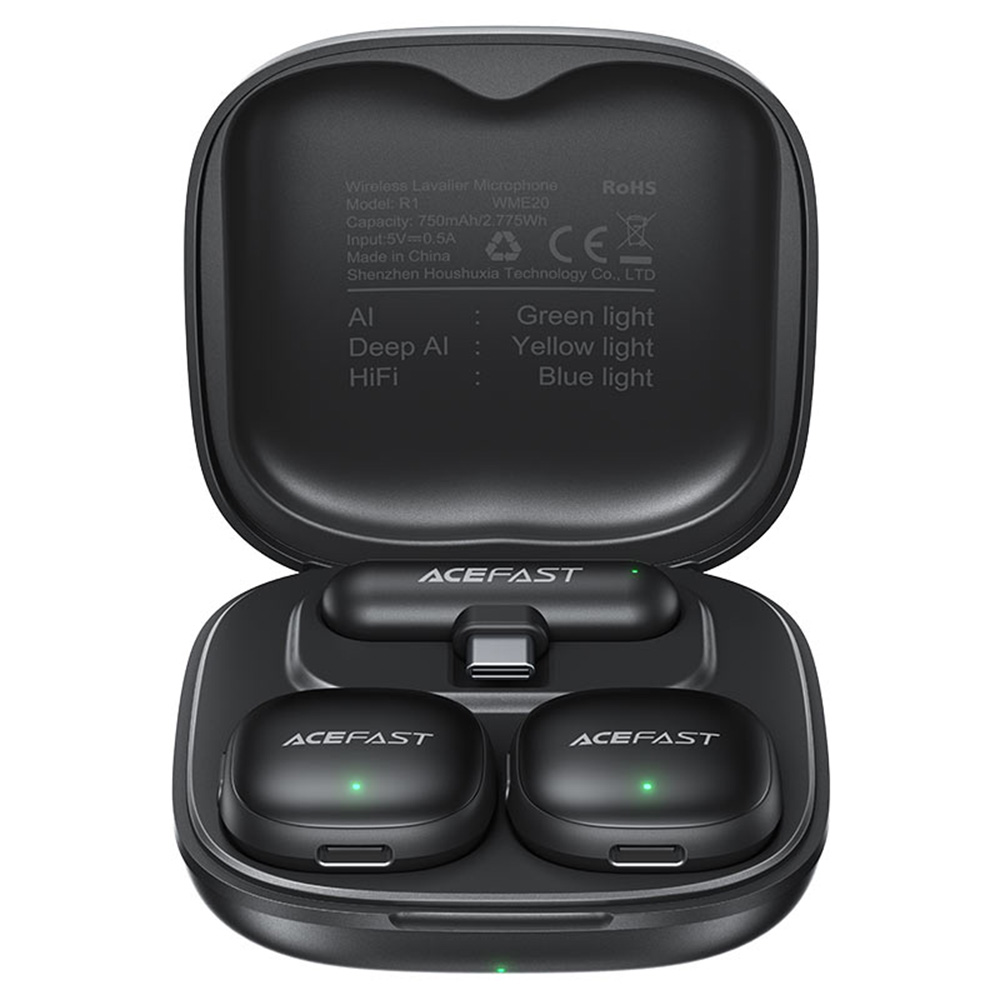 Termék leírás Acefast Wireless Lavalier Microphones (R1) - Type-C, 360° Felvételi Tartomány, Zajcsökkentés, 750mAh, Ultra-alacsony Késleltetés - Fekete