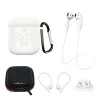 AirPods 1/2 szilikon tokkészlet + tok/fülkampó/nyakszíj/óraszíj tartó/karabiner kapocs - fehér