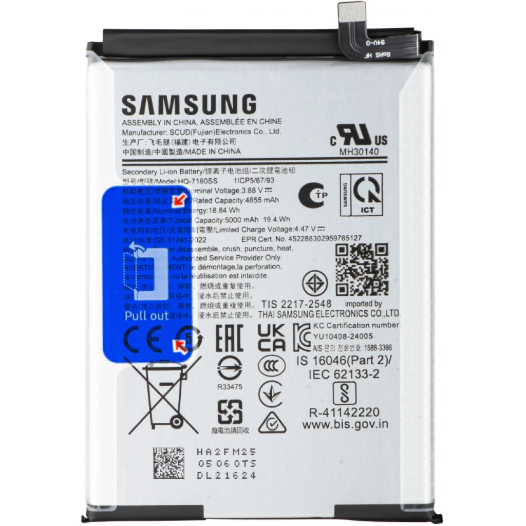 A Samsung licenc alatt gyártott HQ-7160SS akkumulátor a Galaxy A06 A065 készülékhez. Alkatrész a sérült akkumulátor cseréjére szolgál a telefonodban. Cseréld le a régi akkumulátort, és szereld fel a telefonodat egy új, eredeti akkumulátorral, amely biztosítja számára a szükséges energiát.