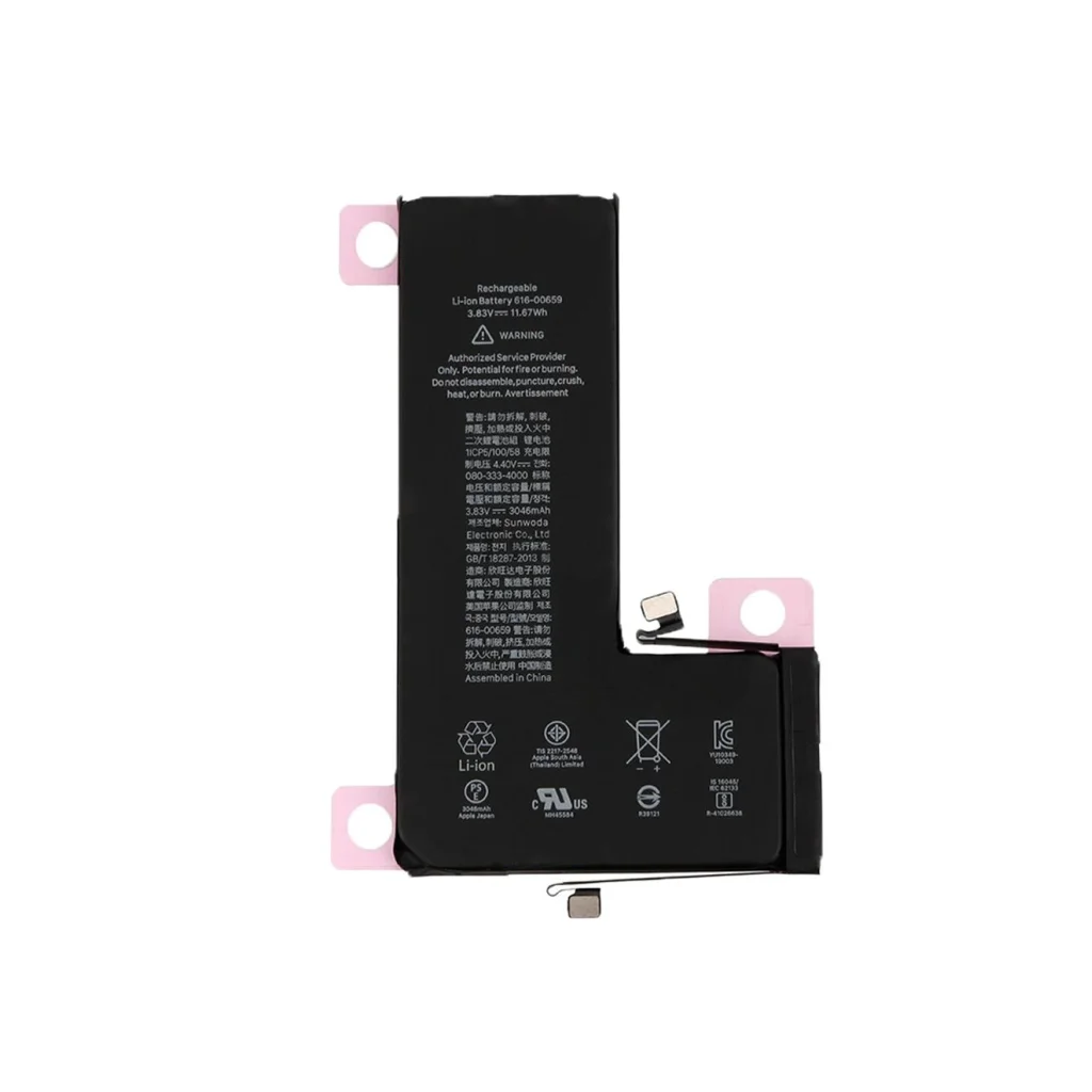 Az akkumulátor tartalmaz továbbá egy flex kábelt és ragasztószalagokat az akkumulátor alatt.