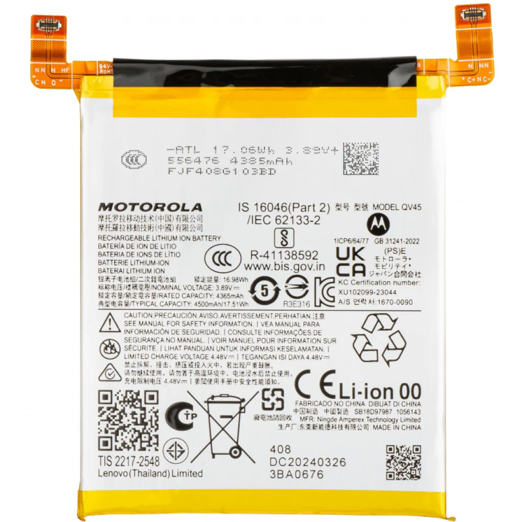 Akkumulátor QV45 Motorola Edge 50 Ultra készülékhez. Motorola licenc alapján készült pótalkatrész, amelyet a telefonod meghibásodott akkumulátorának cseréjére használhatsz. Cseréld ki a régi akkumulátort, és szereld fel telefonodat egy új, eredeti akkumulátorral, amely biztosítja számára a szükséges energiát.