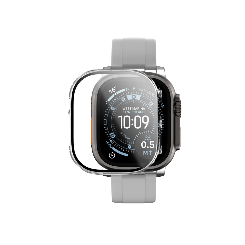 Fejlett FullGuard védelem: Az átlátszó keret az edzett üveggel kombinálva hatékony védelmet nyújt az ütések és karcolások ellen, megvédve az órát a mindennapi használat során. Tartós 9H üveg: A 9H keménység megvédi a karcolásoktól, melyeket kulcsok, készülék élek vagy véletlen ütések okozhatnak. Természetes érintési érzékenység: Az ultra-vékony bevonat sima és precíz válaszadást biztosít, a komfort csorbítása nélkül. Foltmentes védelem: Az oleofób bevonat csökkenti az ujjlenyomatokat, így a képernyő és az üveg hosszabb ideig tiszta marad. Kompatibilitás az Apple kiegészítőkkel: A tok nem zavarja a töltést vagy a gombok működését, teljesen funkcionális marad az Apple Watch Ultra 3-mal.