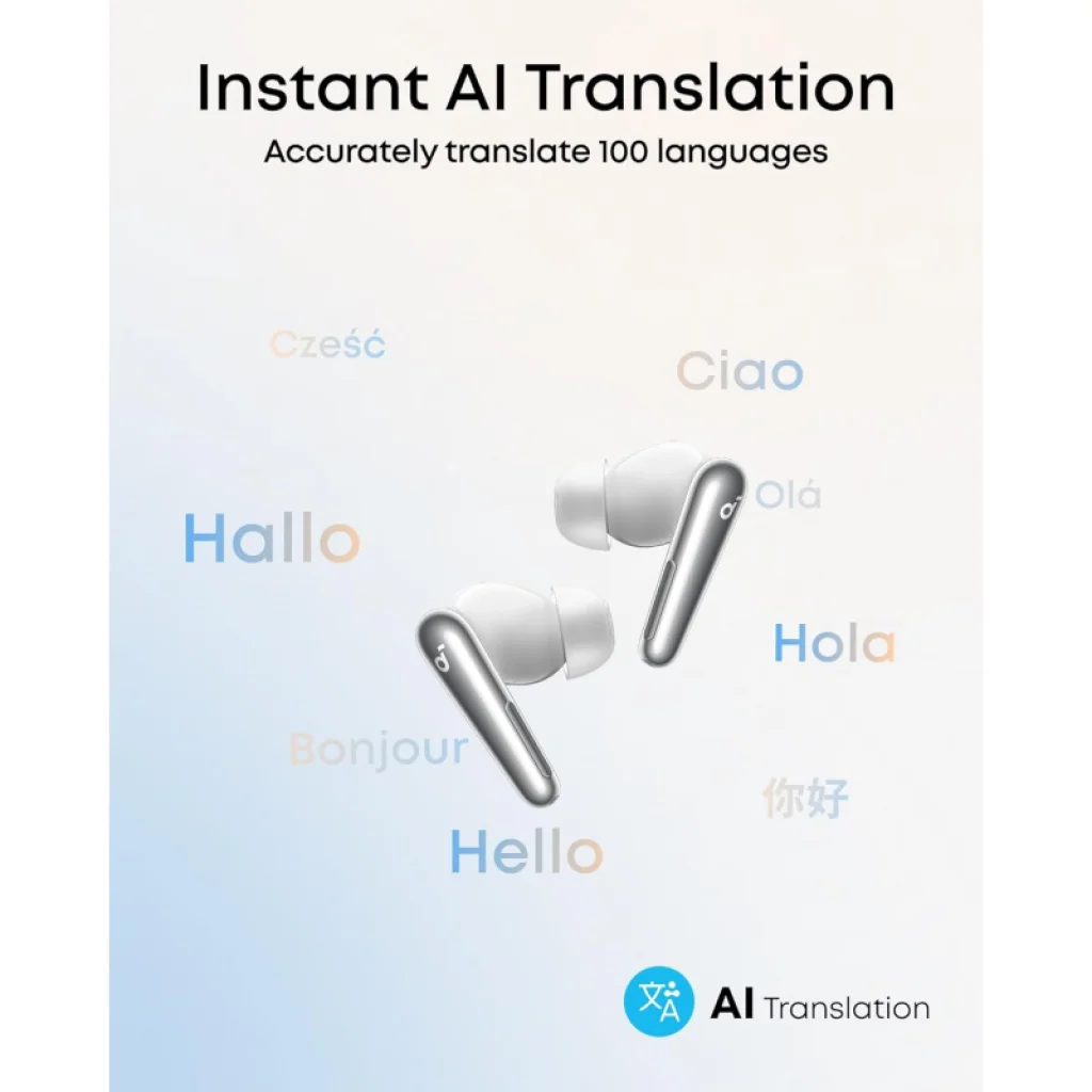 A kristálytiszta beszélgetések garantáltak, bárhol is legyen. A fülhallgatóba épített 6 AI-vezérelt mikrofon, speciális szélzajcsökkentő technológiával, még a legszelesebb körülmények között is tiszta és érthető hangot biztosít. De ez még nem minden! A Soundcore Liberty 4 Pro egy forradalmi funkciót is kínál: az azonnali AI fordítást, amely akár 100 nyelvet képes pontosan lefordítani valós időben. Bontsa le a nyelvi akadályokat és kommunikáljon könnyedén szerte a világon, legyen szó utazásról vagy nemzetközi üzleti megbeszélésekről!