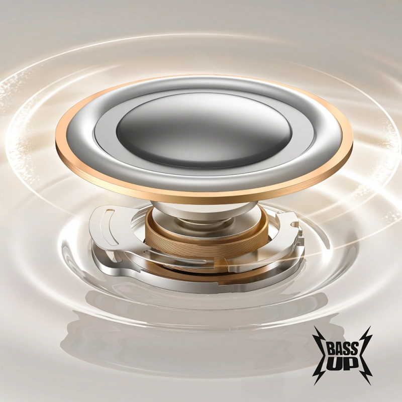 Merüljön el teljesen a zenében vagy a podcastokban az adaptív zajszűrés (Adaptive ANC) technológiának köszönhetően. Ez a fejlett rendszer folyamatosan figyeli környezetét, és intelligens algoritmusok segítségével hatékonyan blokkolja a külső zajokat, így Ön zavartalanul élvezheti a hangélményt – legyen szó forgalmas utcáról vagy zajos tömegközlekedésről. Az 11 mm-es meghajtók és a forradalmi BassUp technológia gazdag, mély és erőteljes basszust biztosít, miközben a hangzás tiszta és részletgazdag marad.