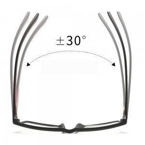 A téglalap alakú, homok fekete matt felületű keret modern és letisztult megjelenést kölcsönöz, amely számos arcformához tökéletesen illeszkedik. A szárak különleges kialakítása lehetővé teszi a ±30°-os rugalmas elhajlást kifelé, ami jelentősen növeli a keret tartósságát, minimalizálja a törés veszélyét, és még stabilabb, kényelmesebb illeszkedést biztosít.