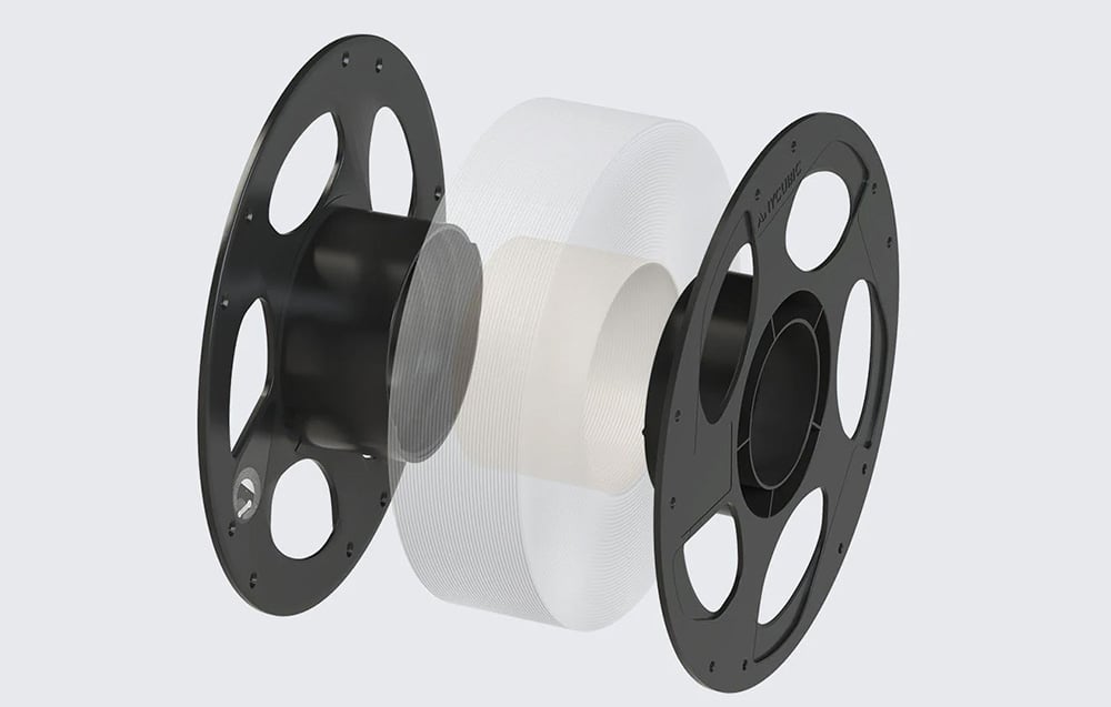 A filamenteket tartó orsók újrafelhasználhatók - a menetes csatlakozórendszerrel ellátott kialakítás kivételes stabilitást biztosít, és megakadályozza a tekercs összegabalyodását. Ez lehetővé teszi a költségek csökkentését és a hulladék mennyiségének csökkentését a következő anyagbeszerzések során.