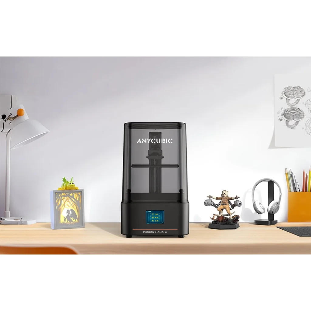 Az Anycubic Photon Mono 4 egy könnyen használható 3D nyomtató, amely kezdők és haladó felhasználók számára egyaránt alkalmas. 10K felbontásának és egyenletes megvilágításának köszönhetően pontos, részletes modellek, például figurák, díszek és mindennapi tárgyak nyomtathatók vele. A nyomtató 153,4 x 87 x 165 mm-es munkaterülettel rendelkezik, és kompatibilis a Photon Workshop szoftverrel.