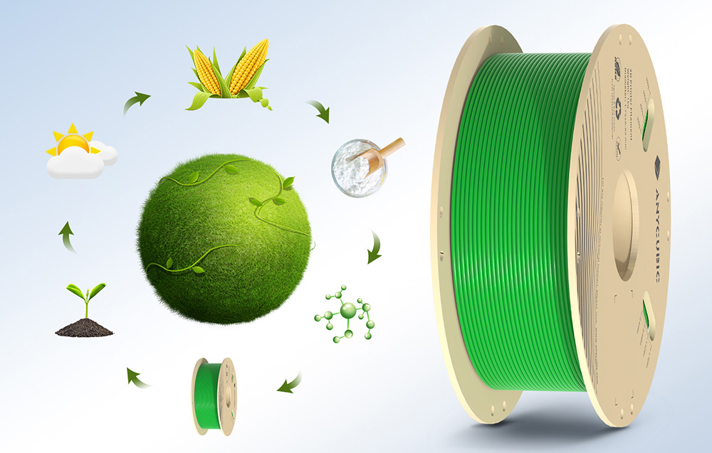 Az elsősorban kukoricakeményítőből készült Anycubic PLA-filament biológiailag lebomló és környezetbarát, ami segít csökkenteni a hulladék mennyiségét és elősegíti a fenntartható 3D nyomtatási gyakorlatokat anélkül, hogy a minőség rovására menne.