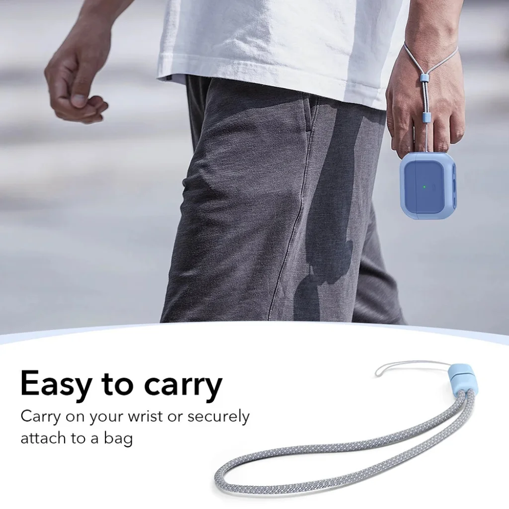 Ne aggódjon többé, hogy elveszíti a fülhallgatóját! A tokhoz tartozó elegáns, fonott csuklópánttal könnyedén magával viheti AirPods Pro 3 készülékét. Viselje a csuklóján, vagy rögzítse biztonságosan hátizsákjára, táskájára, így mindig kéznél lesz, és gyorsan hozzáférhet, amikor szüksége van rá.