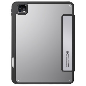 Kivételes funkcionalitás. A tok levehető Y-hajtogatott borítóval rendelkezik, lehetővé téve az iPad elhelyezését tájképi és portré módban is. Ez a kéz nélküli használatot kényelmessé teszi – tökéletes megoldás filmnézéshez vagy munkához. A mágneses záródás stabilitást és biztonságot nyújt, míg a beépített nyílás az Apple Pencil számára egyszerű tárolást biztosít a stylusnak.