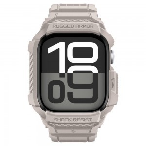 Kényelmes, sportos stílusú Spigen Rugged Armor Pro szíj, amely rugalmas TPU anyagból készült, szénszálas díszítésekkel. Integrált tokkal rendelkezik, kiemelt peremekkel, amely védelmet nyújt az óra tokjának karcolódása és ütése ellen. A szíj teljesen funkcionális és egyénileg állítható.