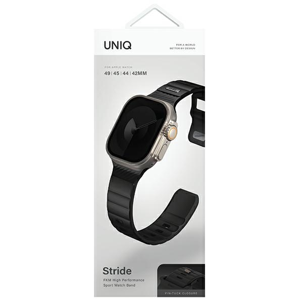Apple Watch Series 1/2/3/4/5/6/7/8/9/SE1/2/3/Ultra1/2/3 42/44/45/49mm UNIQ Strap Stride FKM gumi fekete