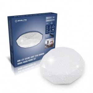 A LED fényforrásokat tartalmazó Asalite LED Mennyezeti Lámpa a jó minőségű és megbízható LED-chipeknek és drivernek, valamint a modern gyémánt formának és a csillagmintás búrának köszönhetően dekoratív és hosszú távú megoldást jelentenek a lakásának egyenletes, esztétikus és a szemnek is kellemes megvilágítására. A CCT (változtatható színhőmérséklet) Mennyezeti Lámpáknak 3000K és 6500K között a színhőmérséklete és a fényereje is egyaránt fokozatmentesen állítható a csomagolásban található távirányítóval.