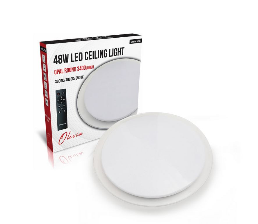 A LED fényforrásokat tartalmazó Asalite LED Mennyezeti Lámpa a jó minőségű és megbízható LED-chipeknek és drivernek, valamint a modern kerek formának és az opál burának köszönhetően dekoratív és hosszú távú megoldást jelentenek a lakásának egyenletes, esztétikus és a szemnek is kellemes megvilágítására. A CCT-s (változtatható színhőmérséklet) Mennyezeti Lámpáknak 3000K és 6500K között a színhőmérséklete és a fényereje is egyaránt fokozatmentesen állítható a csomagolásban található távirányítóval.