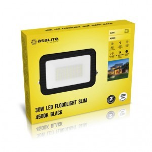 Az Asalite Led Reflektor 30W 4500K a 30W teljesítmény mellett 2700 lumen fényerősség elérésére képes. A teret 110°-ban képes bevilágítani, így optimális választás lakókörnyezetünk (udvarok, teraszok, autó beállók stb.) külterületeinek megvilágítására. Üzembe helyezését segíti a hosszú, 35 cm-es tápkábel.