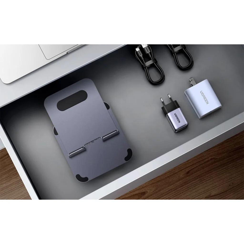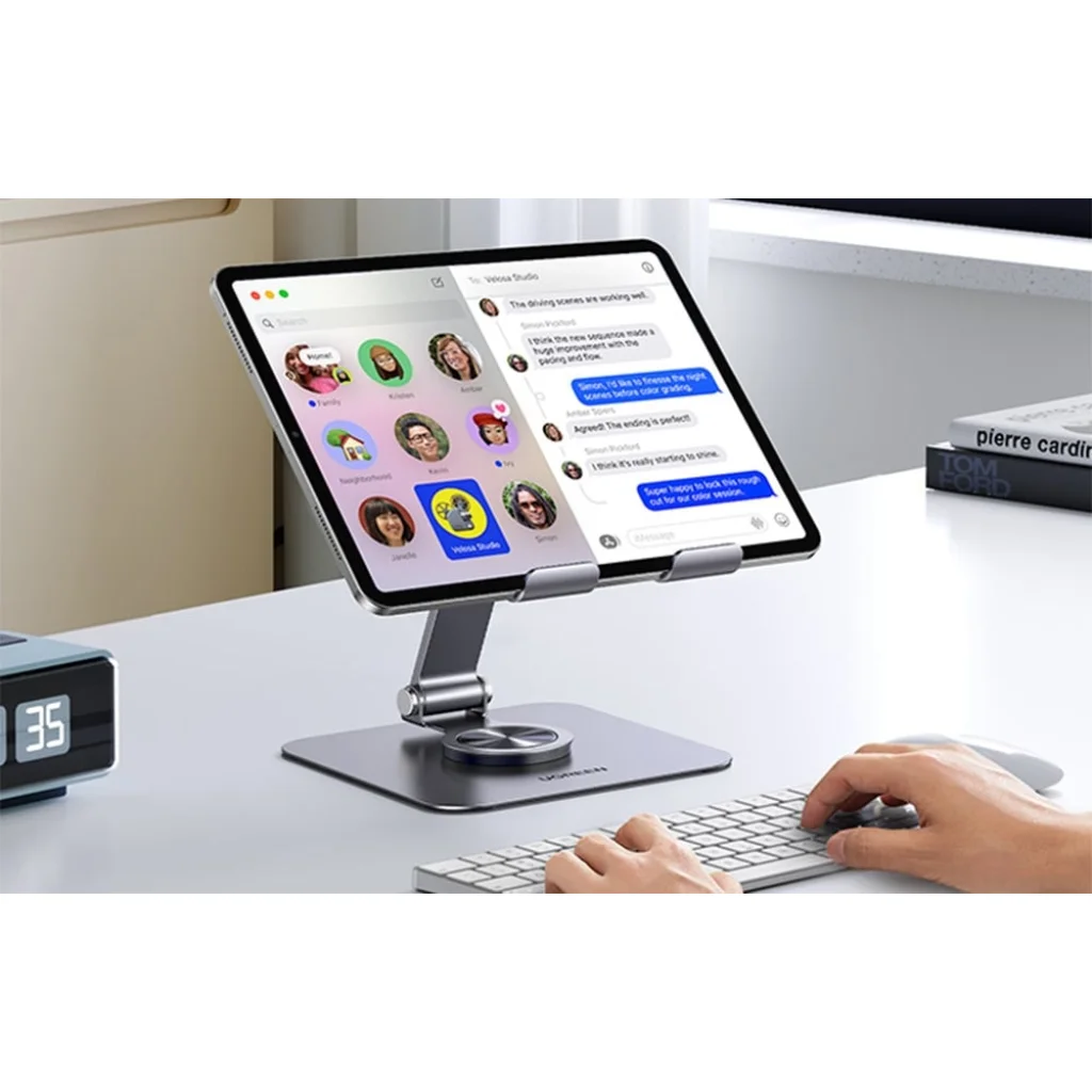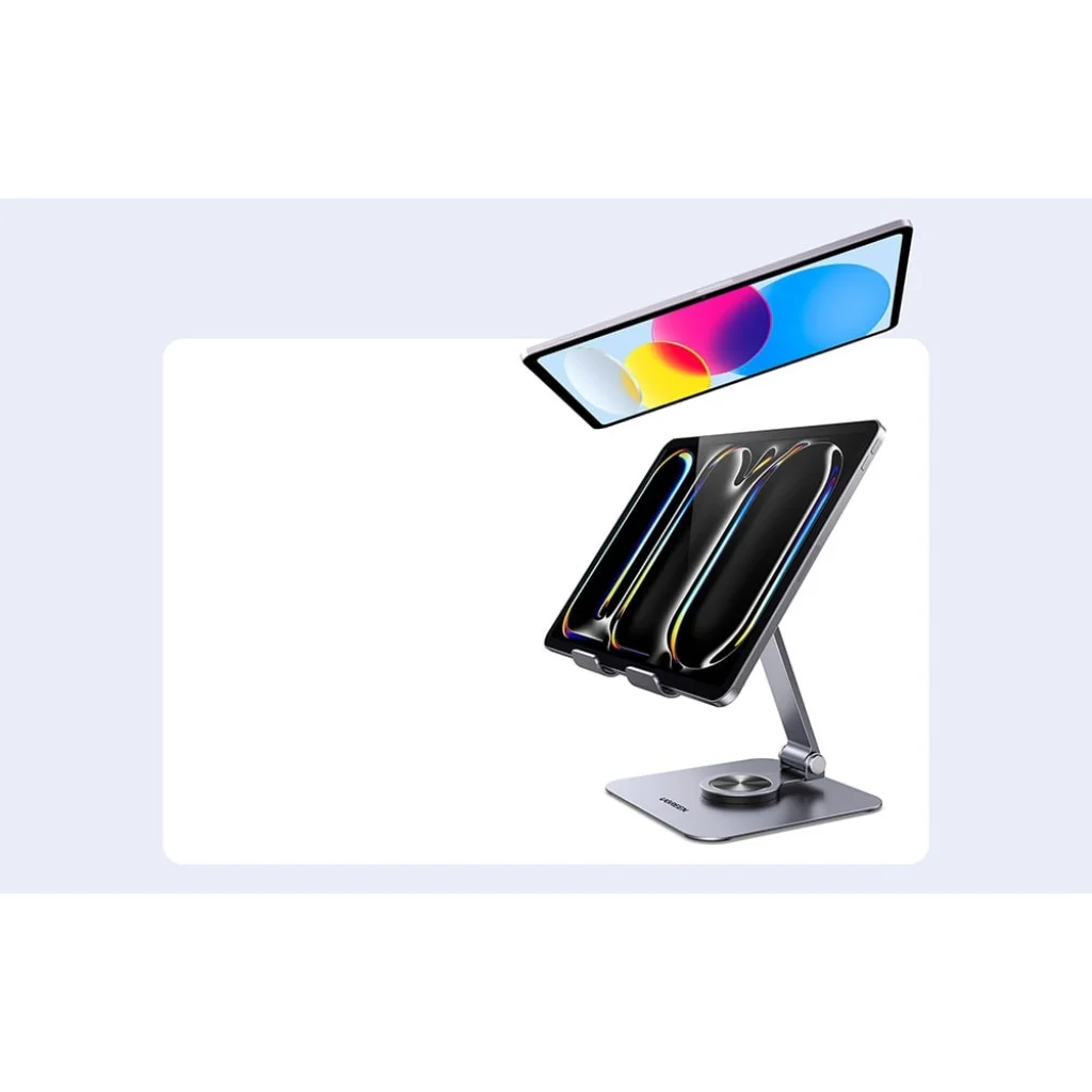 Az UGREEN LP894 360°-ban forgatható állvány kényelmet biztosít a táblagép vagy okostelefon használatához minden helyzetben. Kiváló minőségű fémből készült, amely stabilitást és biztonságos tartást garantál az akár 1 kg súlyú készülékek számára. A 4,7 és 13 hüvelyk közötti készülékekkel való kompatibilitása miatt ideális iPad, Galaxy Tab, Surface Pro, valamint olyan okostelefonok számára, mint az iPhone 16 Pro Max vagy a Samsung Galaxy S24 Ultra.