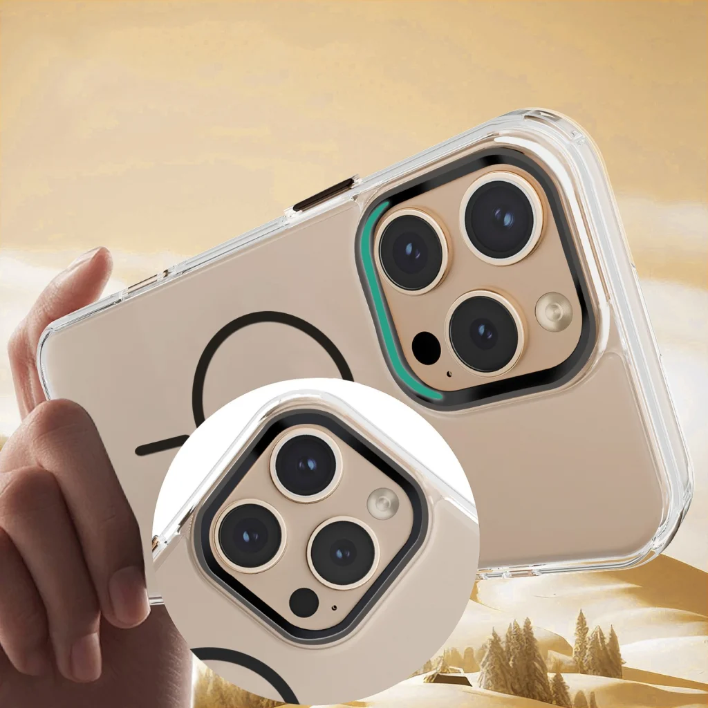 Megerősített sarkok hatékonyan elnyelik a ütődéseket, védve az okostelefont a zuhanások során bekövetkező sérülésektől. Az átlátszó sárgulás-ellenálló anyag kiemeli a telefon designját, míg a gombok és a kamera keret fémes befejezése elegáns megjelenést kölcsönöz.