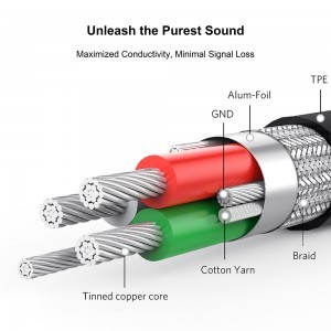 - Prémium belső szerkezet: Az ónozott réz magok, a pamutszál szigetelés, az alumíniumfólia és a fonat árnyékolás (GND) együttesen biztosítják a zajmentes, tiszta jelátvitelt. Az TPE külső borítás tovább növeli a tartósságot.