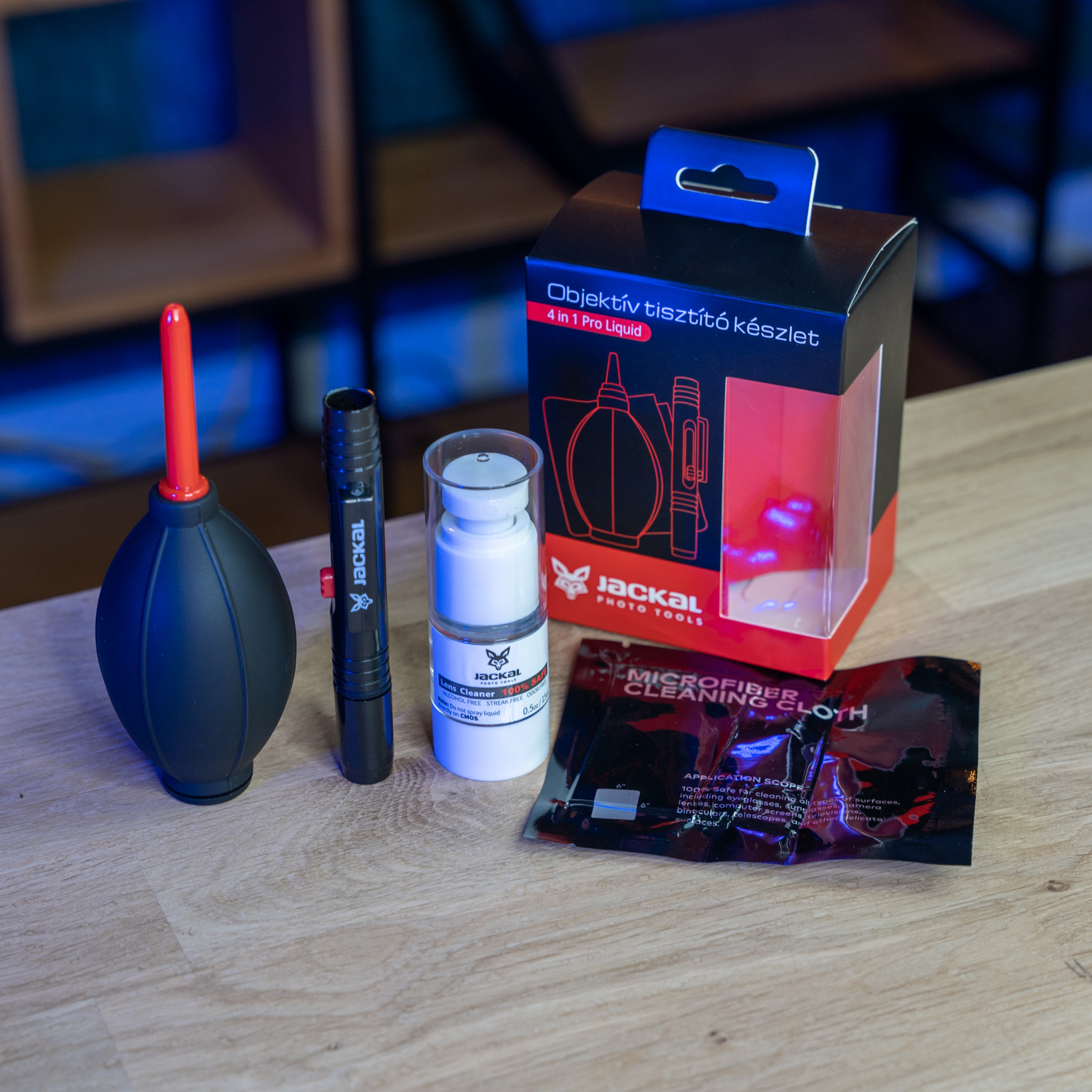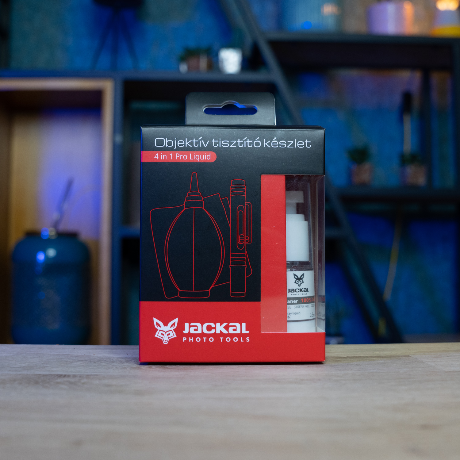 Jackal Pro Clean 4 in 1 Liquid objektív tisztító készlet, alkohol- és ammóniamentes tisztító folyadékkal. A tisztítókészlet használható objektívekre, optikákra, szűrőkre. Pormentes vákuumzárt mikroszálas törlőkendővel a karcolódás elkerülése végett.