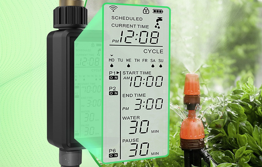 A vezérlő lehetővé teszi akár 6 öntözési ütemterv beállítását pontos kezdési és befejezési időpontokkal. Így a ciklusokat az időjárásnak, a napszaknak és a növények típusának megfelelően állíthatja be. A készülék kétféle üzemmódot támogat: automatikus (az ütemterv szerint) és kézi - a korábban ütemezett program megszakítása nélkül.