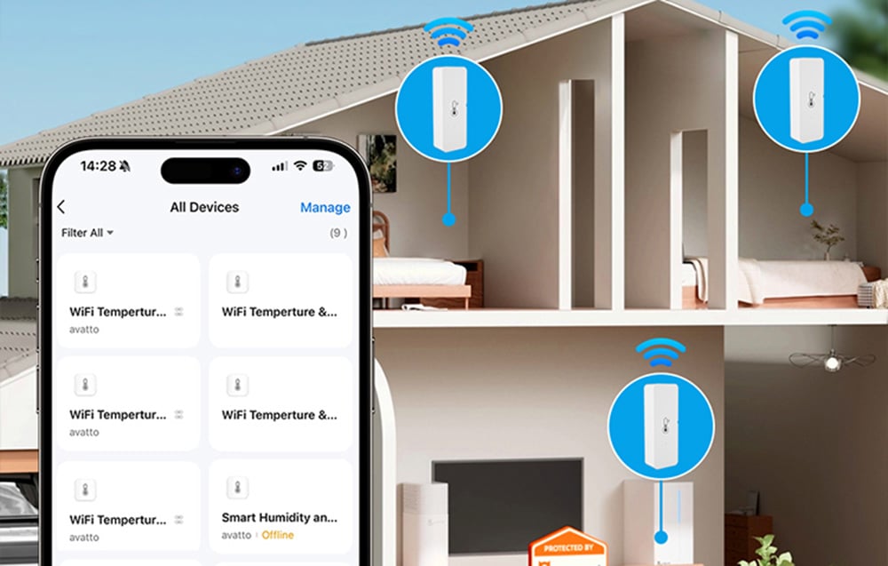 Az Avatto WHS10 intelligens WiFi hőmérséklet- és páratartalom-érzékelő segít fenntartani az ideális klímát bármely helyiségben. A 2,4 GHz-es Wi-Fi csatlakozásnak köszönhetően valós időben pontosan mérheti a hőmérsékletet és a páratartalmat, és azonnali értesítéseket kaphat az alkalmazásban. Az adatok 12 hónapig történő tárolása és a távoli elérés lehetősége révén ellenőrizheti az otthoni, irodai, üvegházi vagy borospincében uralkodó körülményeket. A készülék két AAA elemmel működik, és az intelligens energiatakarékos rendszer automatikusan készenléti üzemmódba kapcsol, amikor az érzékelő nem továbbít adatokat. A piros LED-kijelző jelzi a párosítási módot. Az érzékelő -9,9°C és 60°C közötti hőmérsékletet és 0-99,9% RH közötti páratartalmat figyel. Pontossága ±1°C, illetve ±5% RH, így megbízható adatokat biztosít folyamatos elemzéshez és az intelligens otthoni automatizáláshoz. Az AVATTO APP vagy a Smart Life APP értesít, ha a hőmérséklet vagy páratartalom meghaladja a beállított küszöbértékeket, és grafikonok formájában követheti nyomon azokat. Az AVATTO WHS10 zökkenőmentesen integrálható más okosotthon-eszközökkel. Wi-Fi IR távirányítóval összekapcsolva automatikusan vezérelheti például a légkondicionálót, a párásítót vagy a ventilátort. Távolról is elérheti a hőmérsékletet és páratartalmat Wi-Fi-n keresztül. Az alkalmazásban több érzékelőt is hozzáadhat különböző helyiségek felügyelete érdekében. A készülék méretei 67 × 27 × 21 mm.