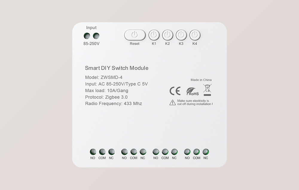 Az Avatto ZWSMMD-4-250V egy 4 csatornás ZigBee kapcsolómodul feszültségmentes érintkezővel, amelyet úgy terveztek, hogy biztonságosan és pontosan kezelje az eszközöket DC 250V-ig. Minden csatorna akár 10 A terhelést is támogat, ami nagy rugalmasságot biztosít a világítás, az otthoni automatizálás vagy a vezérlőrendszerek vezérlésében. A feszültségmentes érintkező használata ideálissá teszi a modult ott, ahol a tápáramkör és a vezérlőjel szétválasztása szükséges.