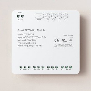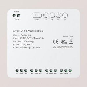Az Avatto ZWSMMD-4-32V egy 4 csatornás ZigBee kapcsolómodul feszültségmentes érintkezővel, amelyet alacsony feszültségű eszközök biztonságos és pontos kezelésére terveztek, akár 32V DC feszültségig. Minden csatorna akár 10 A terhelést is támogat, ami nagy rugalmasságot biztosít a világítás, az otthoni automatizálás vagy a vezérlőrendszerek vezérlésében. A feszültségmentes érintkező használata ideálisvá teszi a modult ott, ahol a tápáramkör és a vezérlőjel szétválasztása szükséges.
