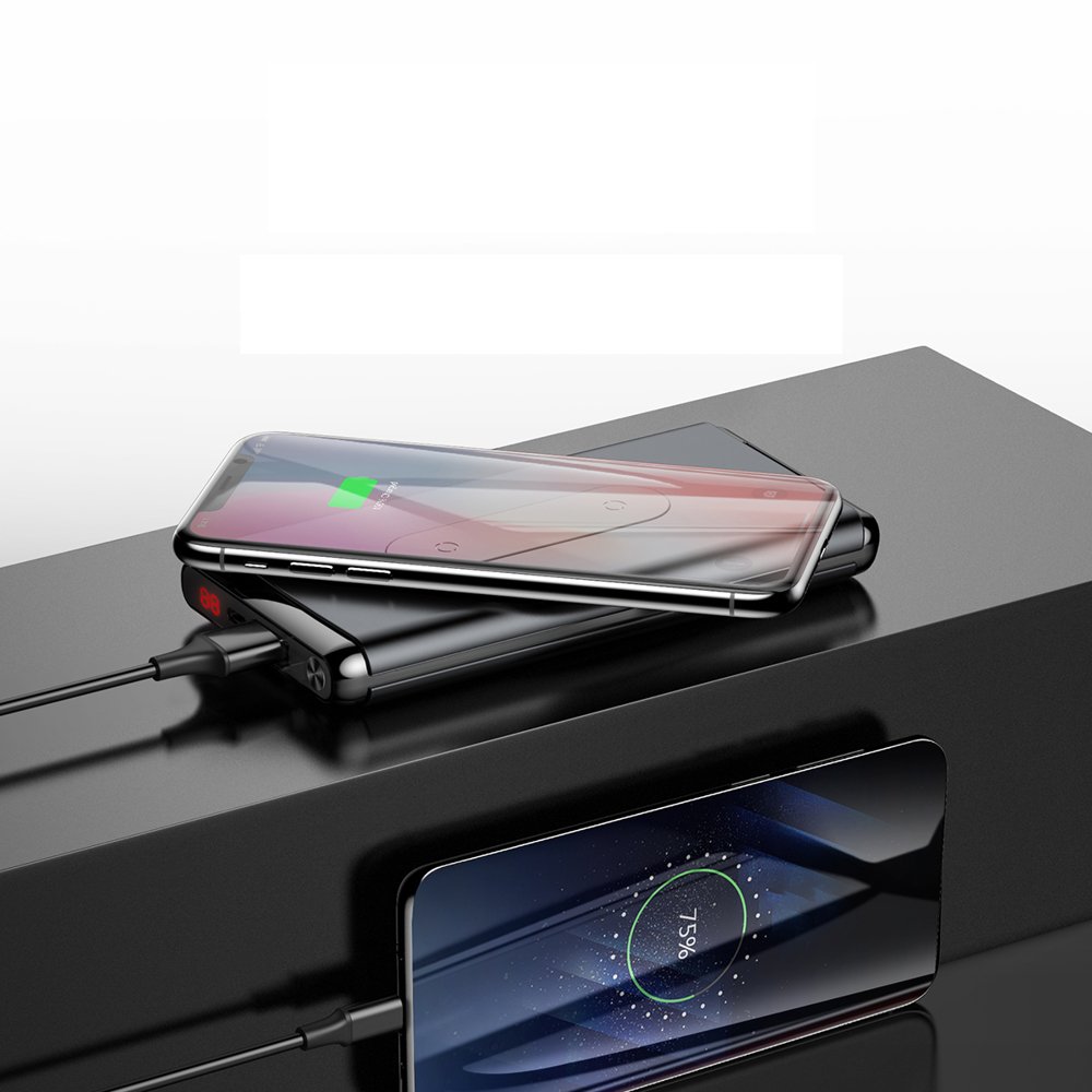 Baseus 10000 mAh powerbank vezeték nélküli Qi gyorstöltéssel 15W fekete színben (WXHSD-D01)