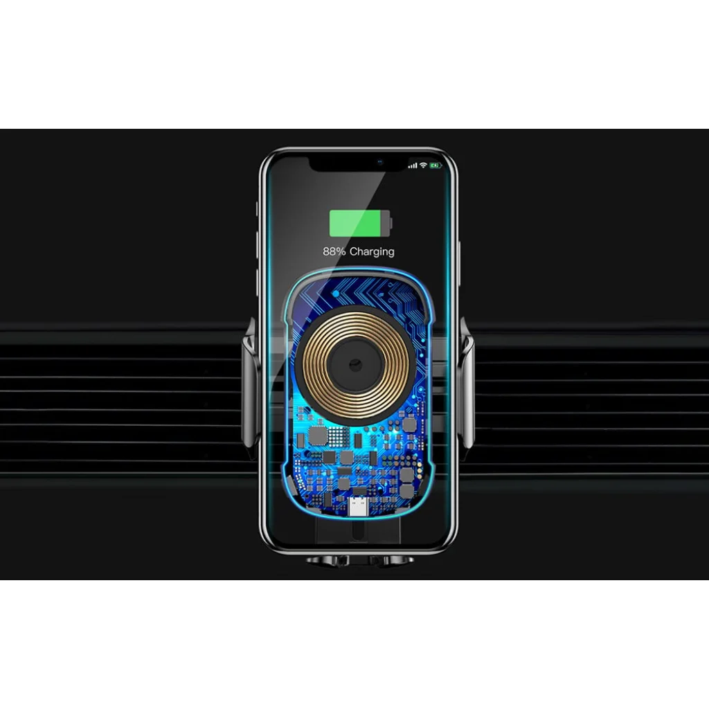 A beépített infravörös érzékelő automatikusan kinyitja a pofákat, amikor a telefon közeledik, így gyors és kényelmes behelyezést tesz lehetővé. A mechanizmus néhány másodperc alatt lezárul, biztosítva a telefon biztonságos tartását és az azonnali töltést.