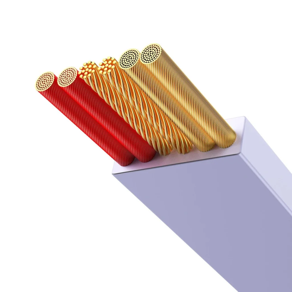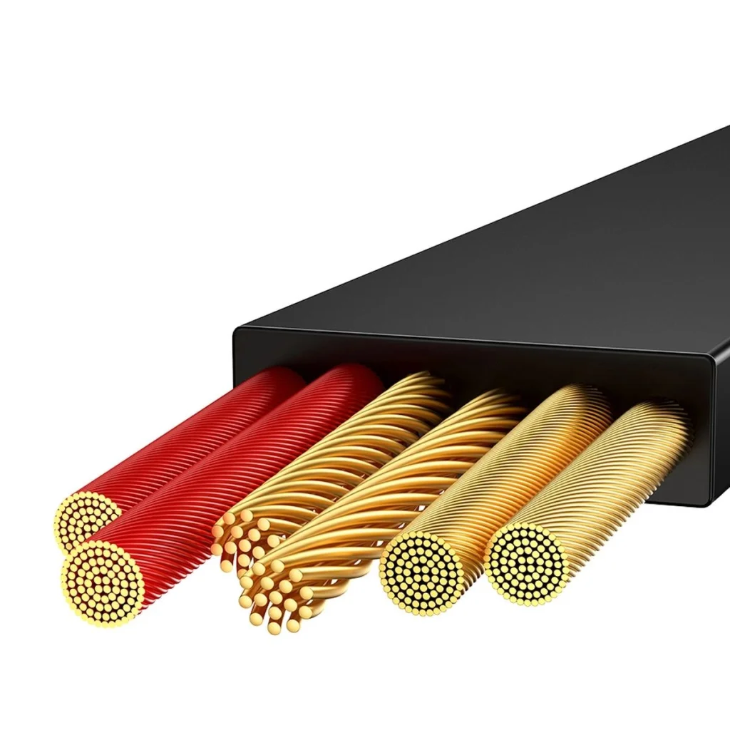Egyszerű és kényelmes kialakítás A bemutatott Baseus eszköz egyszerű, de tartós kialakítással bír. A kábel középső részén egy orsó található, érdekes stílusban a gyártó logójával. Ebben van egy feltekert kábel, amely szükség esetén könnyen kicsavarható és csatlakoztatható a töltőhöz. A másik oldalon egy elágazás található három további bemenettel. A tápegységhez csatlakozó kábelt védőanyaggal borították, amely befolyásolja a kopásnak vagy hajlításnak való ellenállását. Egy kábel - sok lehetőség A Baseus kábel sok lehetőséget kínál neked. Ezzel különböző eszközöket tölthetsz egyszerre. Mindez a speciális elágazásnak köszönhetően három különálló végződésre. Ennek köszönhetően egy USB Type C, microUSB és IP kimenetet is kapsz. Gyakorlatilag ez azt jelenti, hogy három különböző kábelről lemondhatsz és helyette használhatsz egy univerzális kábelt, amelyet mindig magaddal vihetsz. Megerősített kábelszerkezet Nem kell aggódnod amiatt, hogy bekövetkezik az egyik leggyakoribb meghibásodás a kábelekben - hajlítás vagy kopás a csúcs közelében. Mindez a Baseus által használt megerősített szerkezetnek köszönhetően - mindegyik kimenet megerősített, így hosszú ideig szabadon használhatod a kábelt.