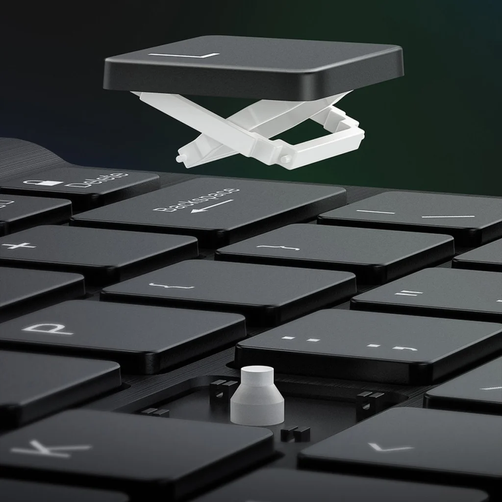 - Scissor-switch mechanizmus: A laptop billentyűzetekhez hasonló, precíz és reszponzív billentyűmechanizmus gondoskodik a kényelmes és hatékony gépelésről.