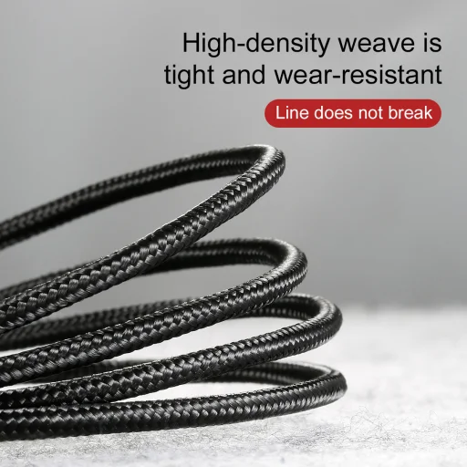 - Magas sűrűségű fonat: A kábel sűrű szövésű nejlonfonata rendkívül szoros és kopásálló, megakadályozza a kábel megtörését vagy elszakadását.