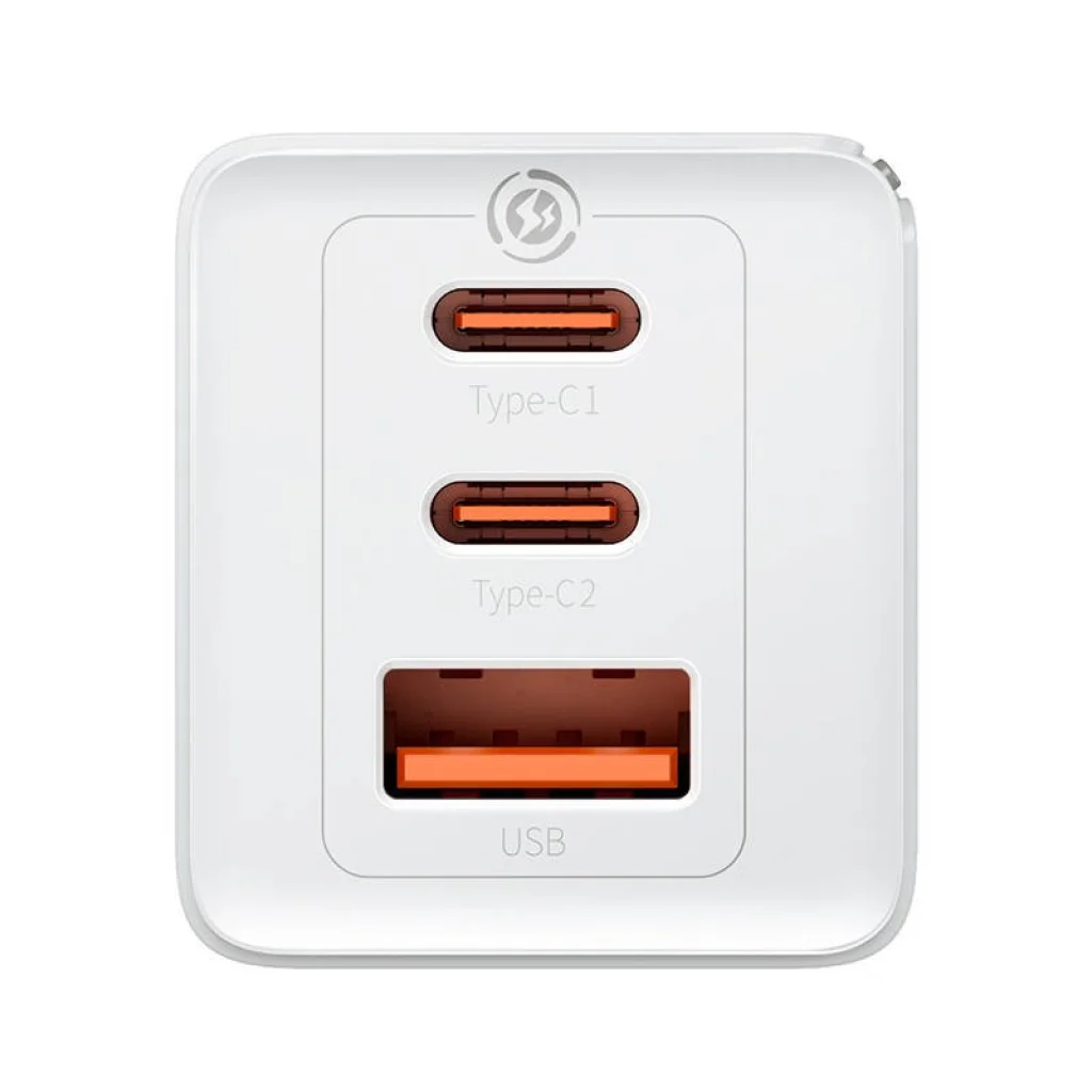 A töltő összesen három USB porttal rendelkezik (2xUSB-C, 1xUSB-A), és a maximális teljesítménye akár 65W.