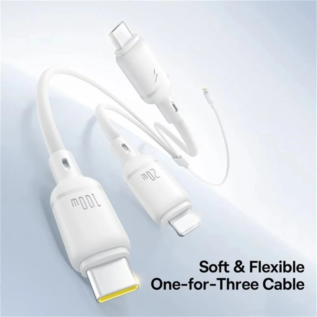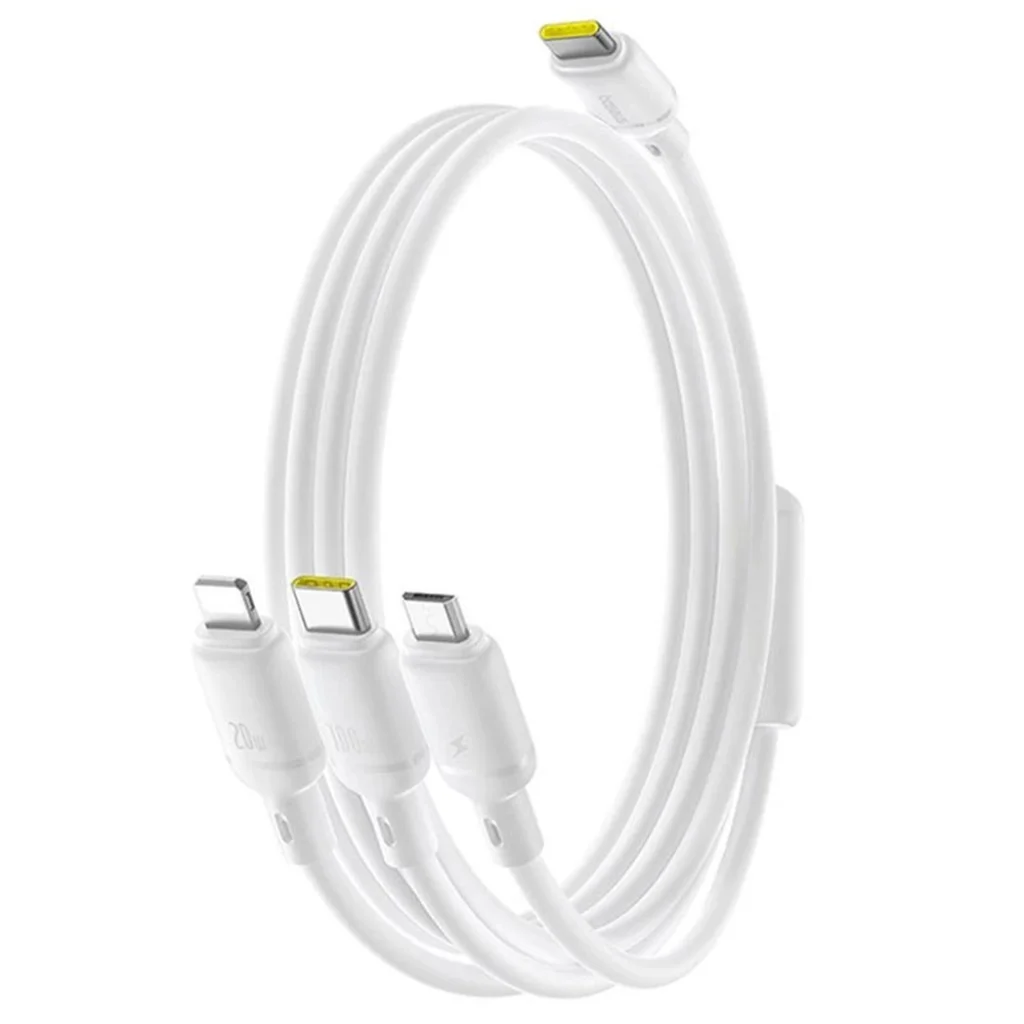 Felejtse el a több kábel körüli problémákat és a rendetlenséget! Ez az innovatív Baseus kábel egyetlen Type-C bemenettel rendelkezik, és három különböző kimeneti csatlakozót kínál: Type-C, Micro-USB és Lightning. Töltsön fel egyszerre akár három eszközt is, legyen szó okostelefonról, tabletről, laptopról vagy más hordozható eszközről. Ez a sokoldalú megoldás ideális otthonra, irodába, vagy utazáshoz, minimalizálva a magával vitt kábelek számát.