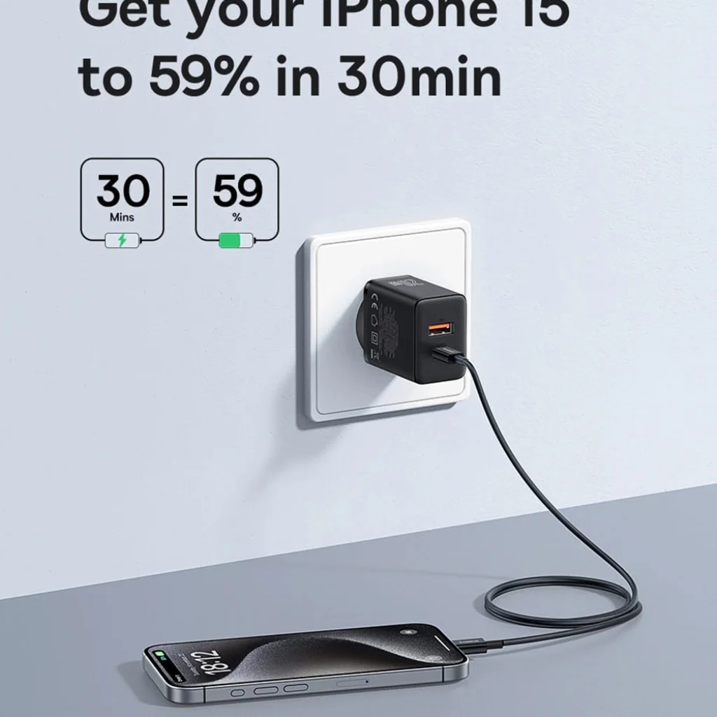 - Villámgyors 20W-os töltés: Élvezd a gyors töltés előnyeit! Az erős 20W-os teljesítménynek köszönhetően iPhone 15 készülékedet akár 59%-ra is feltöltheted mindössze 30 perc alatt.
