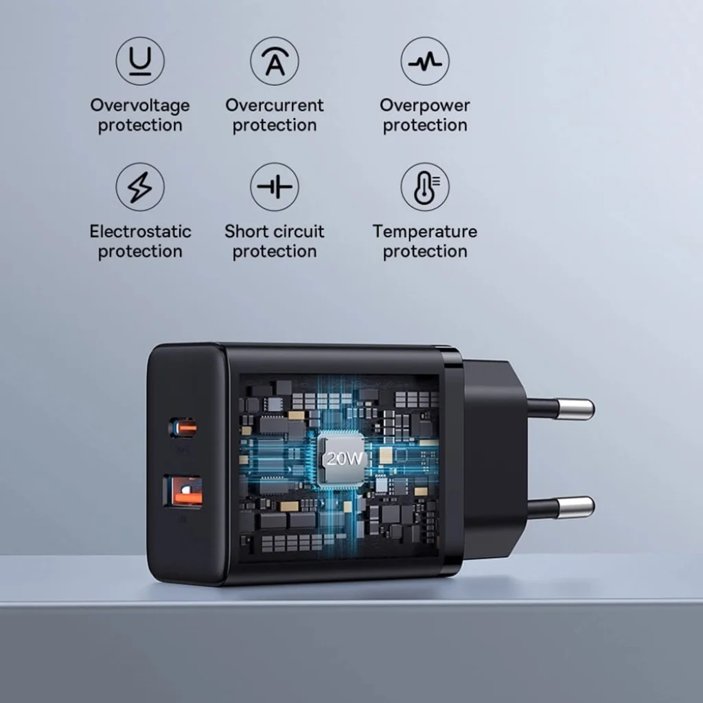 Válaszd a Baseus 20W-os fali töltőt, és tapasztald meg a gyors, hatékony és mindenekelőtt biztonságos töltés kényelmét minden nap!
