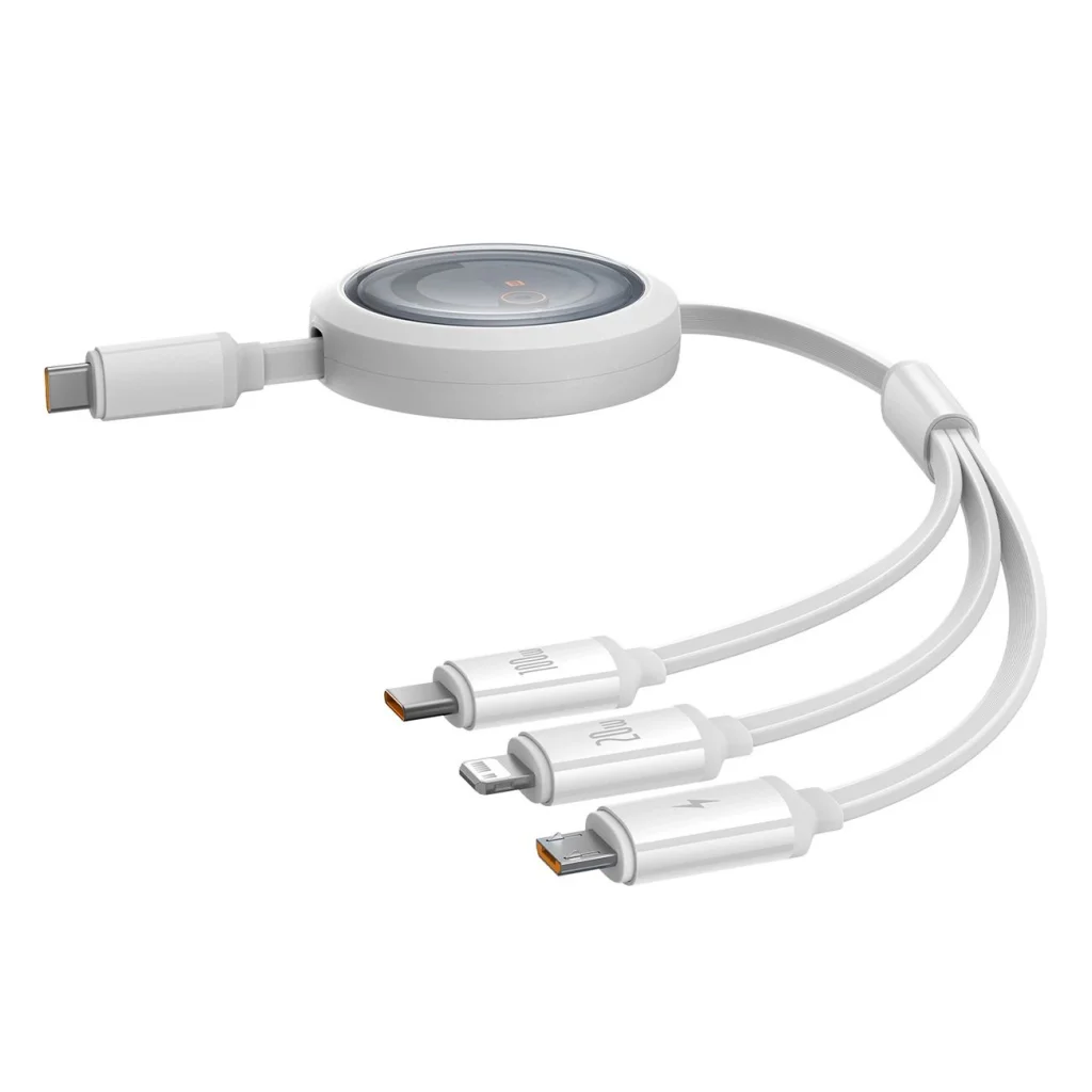 Baseus Free2Draw visszahúzható kábel USB-C - Lightning / USB-C / micro USB csatlakozókkal, akár 100W teljesítménnyel és 1.1 m hosszúsággal - fehér A Baseus Free2Draw CB000084 kábel nem csak a töltési sebességgel, hanem a sokoldalúsággal is lenyűgöz a három különböző csatlakozónak köszönhetően. Többek között ultra-gyors laptop töltést biztosít akár 100W teljesítménnyel! Tökéletes utazásokhoz, és az autód rendben tartásához. Ez egy olyan megoldás, amely az intelligens chipnek köszönhetően optimalizálja a töltési folyamatot, és biztonságossá teszi a készülékeid számára.