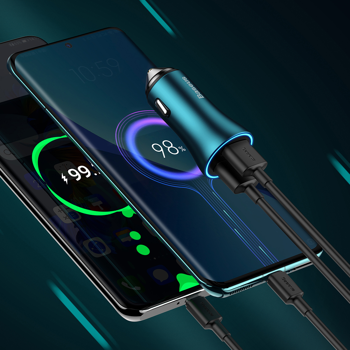 Baseus Golden Contactor Max Autós szivargyújtós töltő 2XUSB - QC PD 60W (CGJM000003) kék