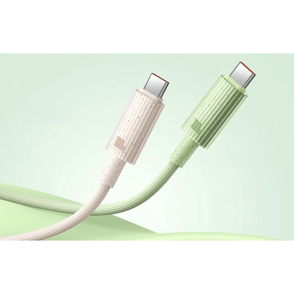 A kábel PC műanyagból készült, és 42%-ban biológiailag lebomló anyagokkal készült - a műanyagot kukoricakeményítővel helyettesítették. Emellett egy sor tartóssági teszten is megfelelt, így ellenáll a hajlításnak. Ráadásul 2 méteres hosszával megkönnyíti a készülékek töltését olyan helyeken, ahol a konnektor messze van. Töltés közben is kényelmesen használhatja. Ezenkívül egy speciális pánt megkönnyíti a termék tárolását, és megvédi az összegabalyodástól.
